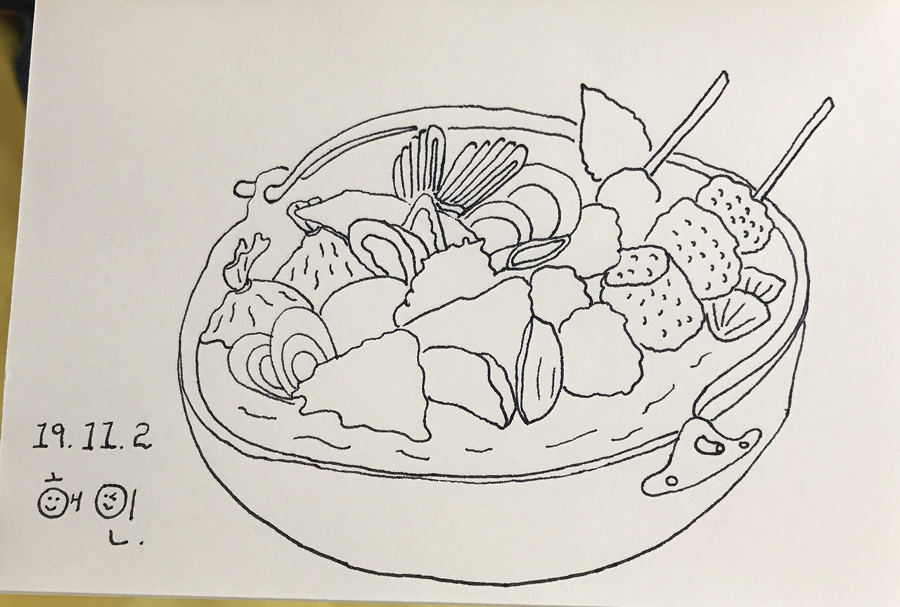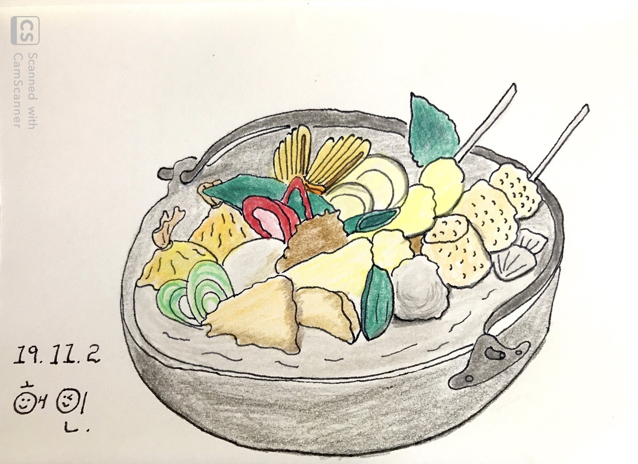스케치를 마쳤는데 색칠을 해야 어묵탕 느낌이 날 듯하다.