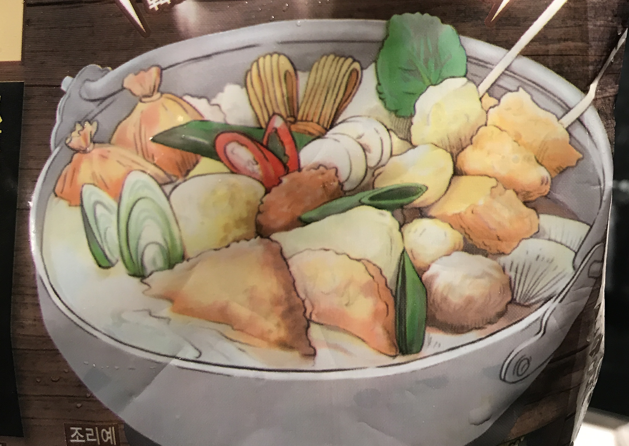 집에 어묵 한 봉지가 보인다. 수협 어묵이란 상표와 어묵탕 한 그릇의 그림이 눈에 들어온다.
