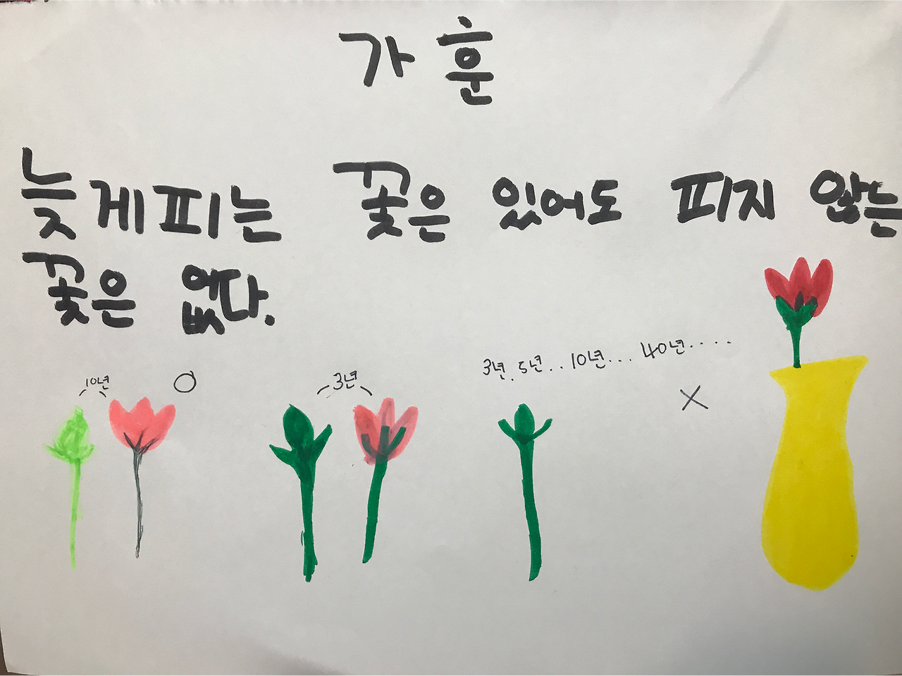 늦게 피지 않는 꽃은 있어도, 피지 않는 꽃은 없다.