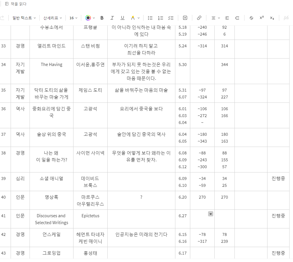그리고 작년에도 15천 쪽을 읽었으니 올해도 그 정도는 가능하지 않을까? 하반기에 바쁜 일이 많지만 그래도 해볼 만하다는 생각이 든다.