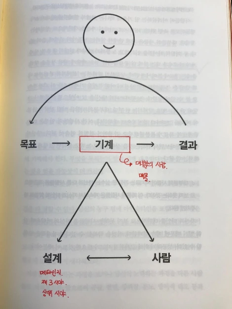 우리에게는 기계라는 모습과 설계자라는 모습 두 가지가 함께 있다. 설계자라는 모습을 고민하지 않으면 늘 지금까지 이뤄졌던 그대로 계속 움직이게 된다. 설계자라는 메타인지를 통해 기계의 오류를 끊임없이 개선해줘야 조금 더 나은 삶을 살게 될 것이라는 생각이 마음에 들었다.