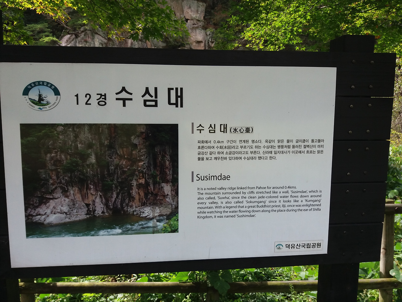 알고 보니 무주 구천동에 33가지 멋진 경치가 있는데 그 중 12경이 여기 수심대 였습니다