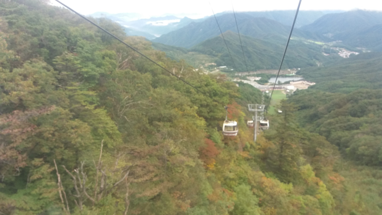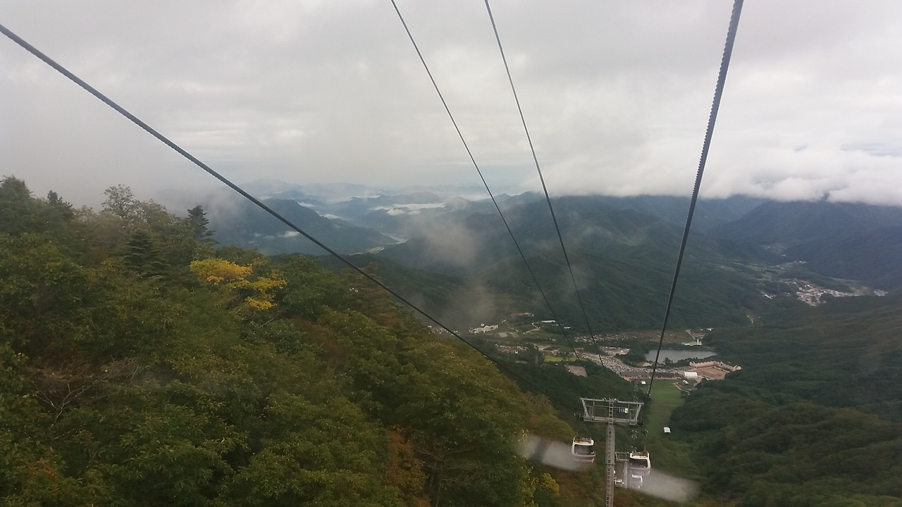정상에서 가족사진을 찍고는 하행 곤돌라를 탔네요