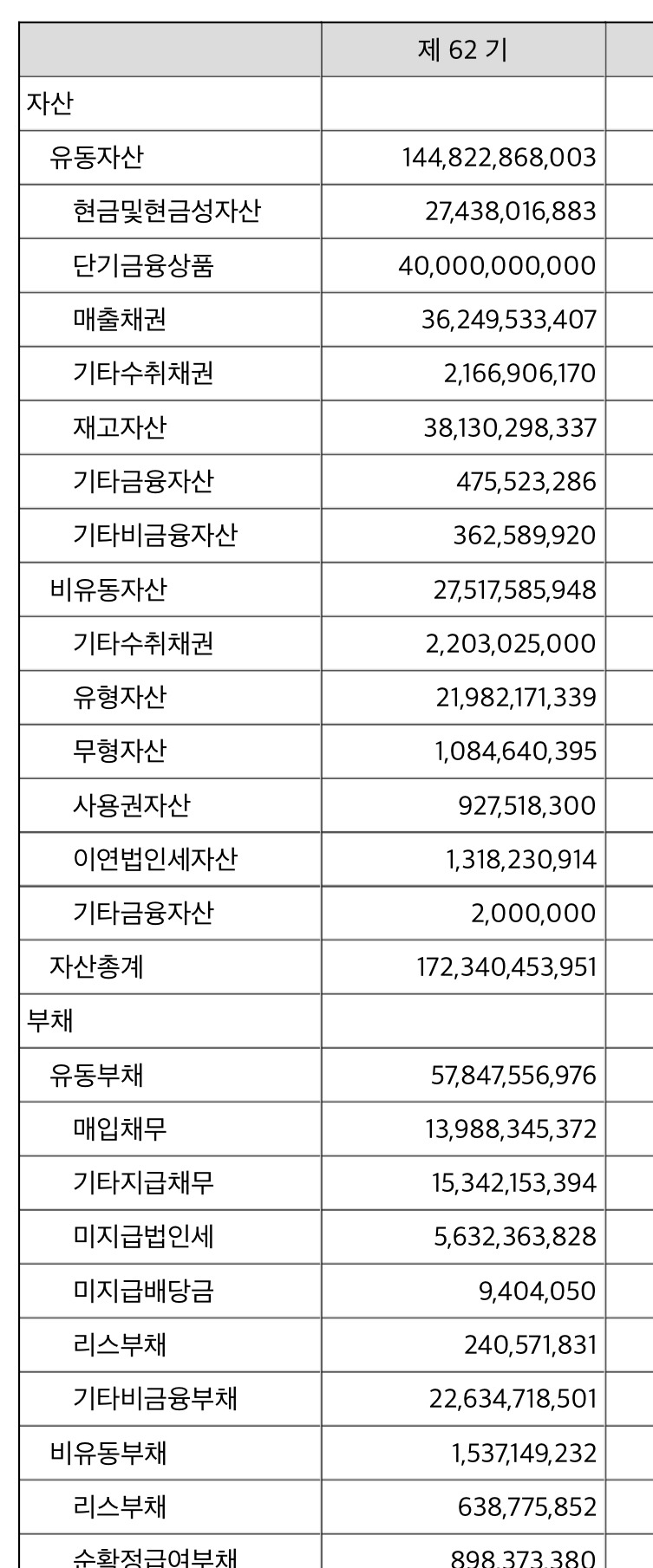 갚아야 할 돈은 매입채무 140억 기타 채무 153억 미지급법인세 56억 총 349억이다.