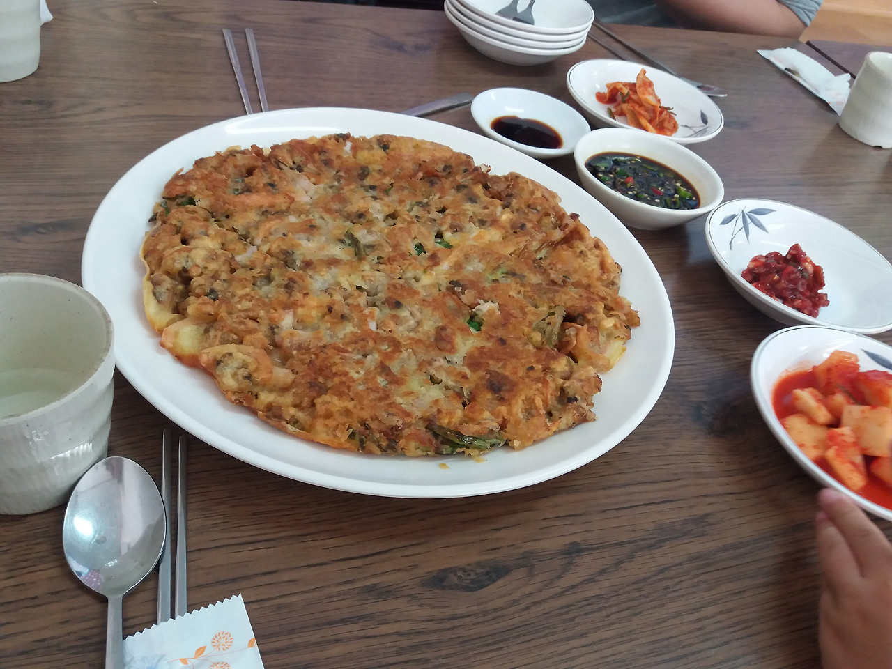 해물 파전이 아주 두툼합니다