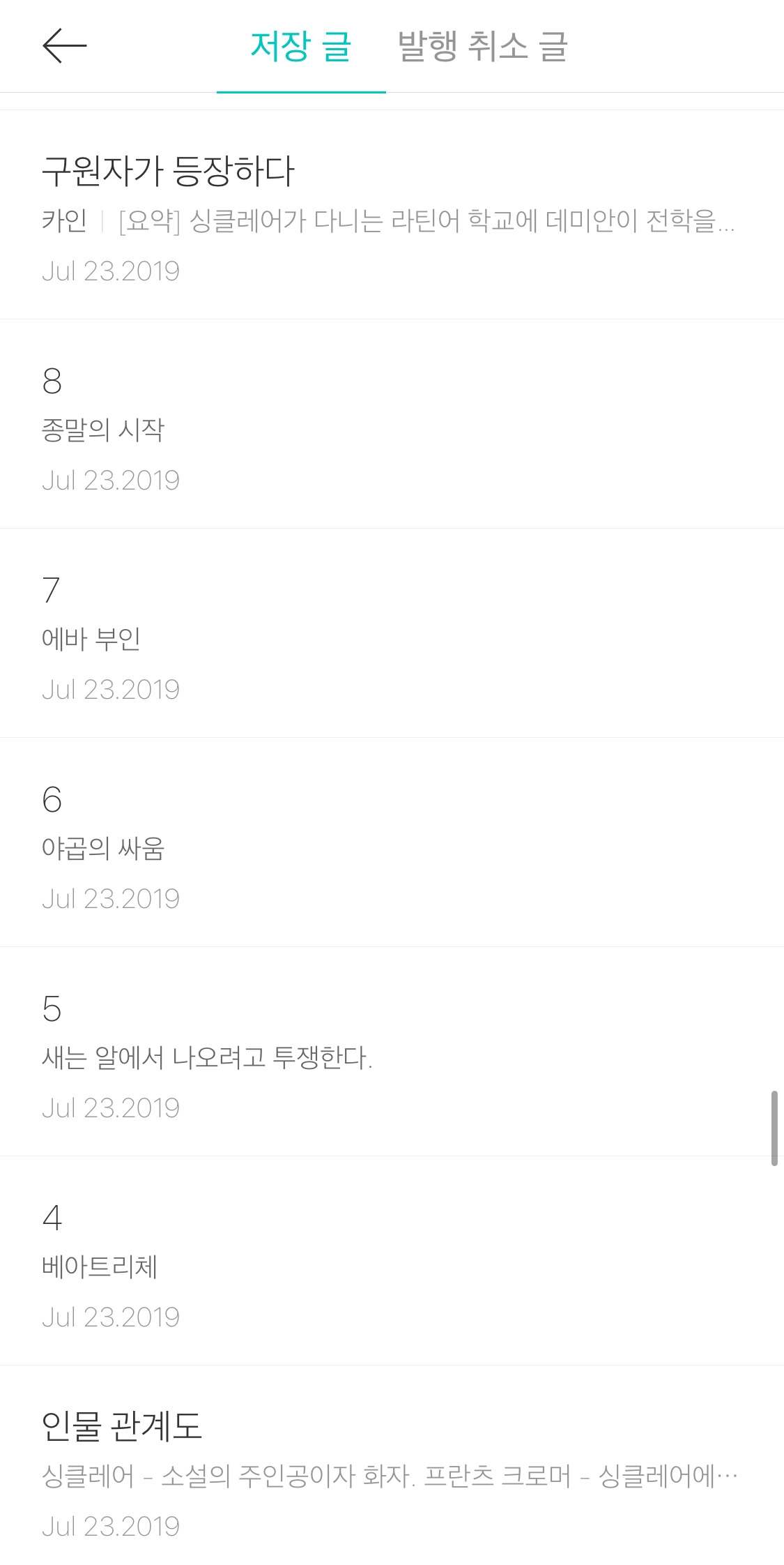 데미안을 재밌게 읽고 매 장마다 글을 써보려 했지만 1장에서 더 이상 쓰지 못하고 남아 있는 글도 있다.