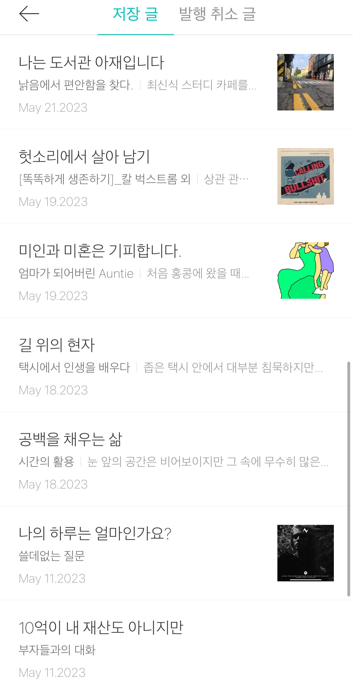 물론 아직 내 브런치에는 저장된 글이 100편 넘게 남아 있다.