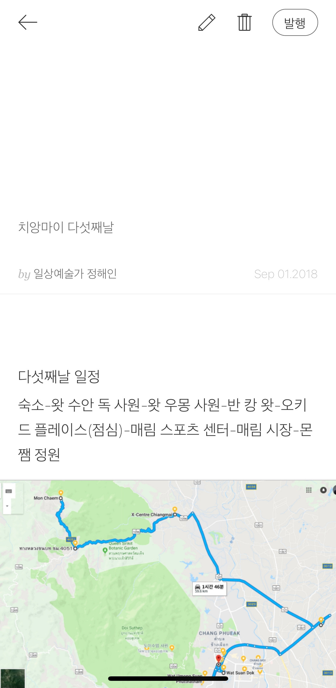 2018년 치앙마이 여행을 마치고 여행기록을 마무리하려다 사진 몇 장과 글 몇 마디를 쓰다 끝내 마치지 못한 여행기도 아직 남아 있다.