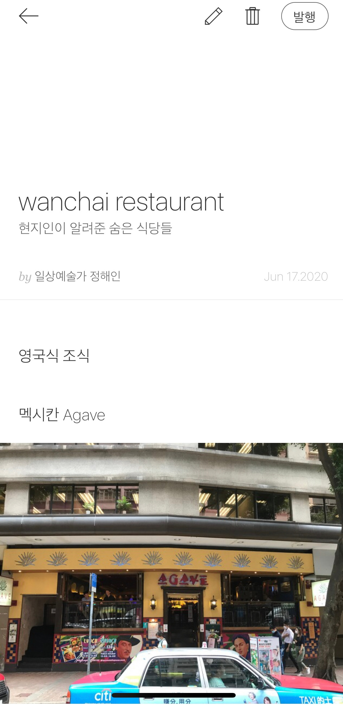 홍콩에서 보낸 시간 동안 완차이 지역의 괜찮은 식당 추천을 받아서 다음에 적어야지 했는데 이미 한국에 돌아와 버렸다. 다시 기억을 떠올리며 써야 하지만 다음을 기약하다가 아직까지 미완성으로 남았다.