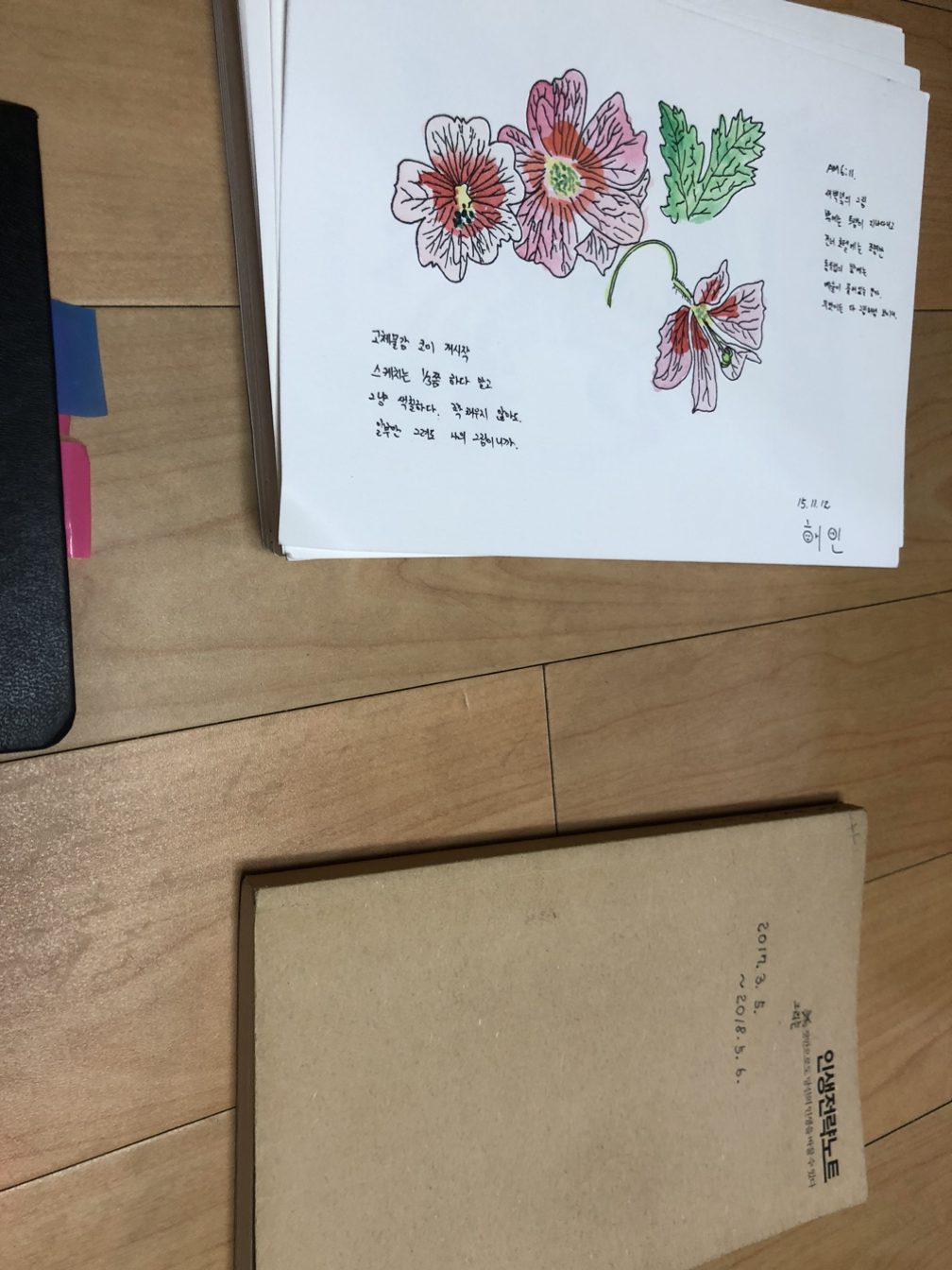 앞뒤가 두꺼운 스케치 노트입니다. 별다른 받침을 밑에 놓지 않아도 그림을 그리기에는 편합니다. 하지만 약간 무거운 감이 있습니다. 종이가 완전히 펴지지 않는 단점도 있지요.
