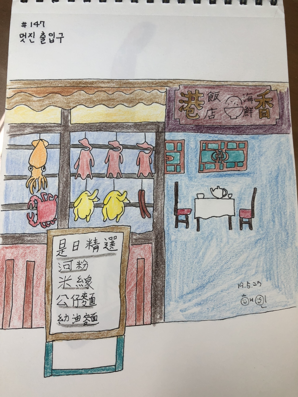 그림 노트를 사셨다면 시작일자를 꼭 적어주세요. 언젠가는 끝이 올 테니까요. 꼭 한 권만 그리지 않아도 됩니다. 저는 가방에 한 권, 집에 한 권, 사무실에 한 권을 두었습니다. 시간이 날 때마다 그리려고요.