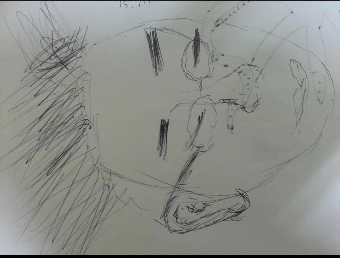 제 얼굴 그렸냐고 묻더군요. 어디 잡지에 나온 연예인 사진인데 도무지 누구인지 알 수 없네요.