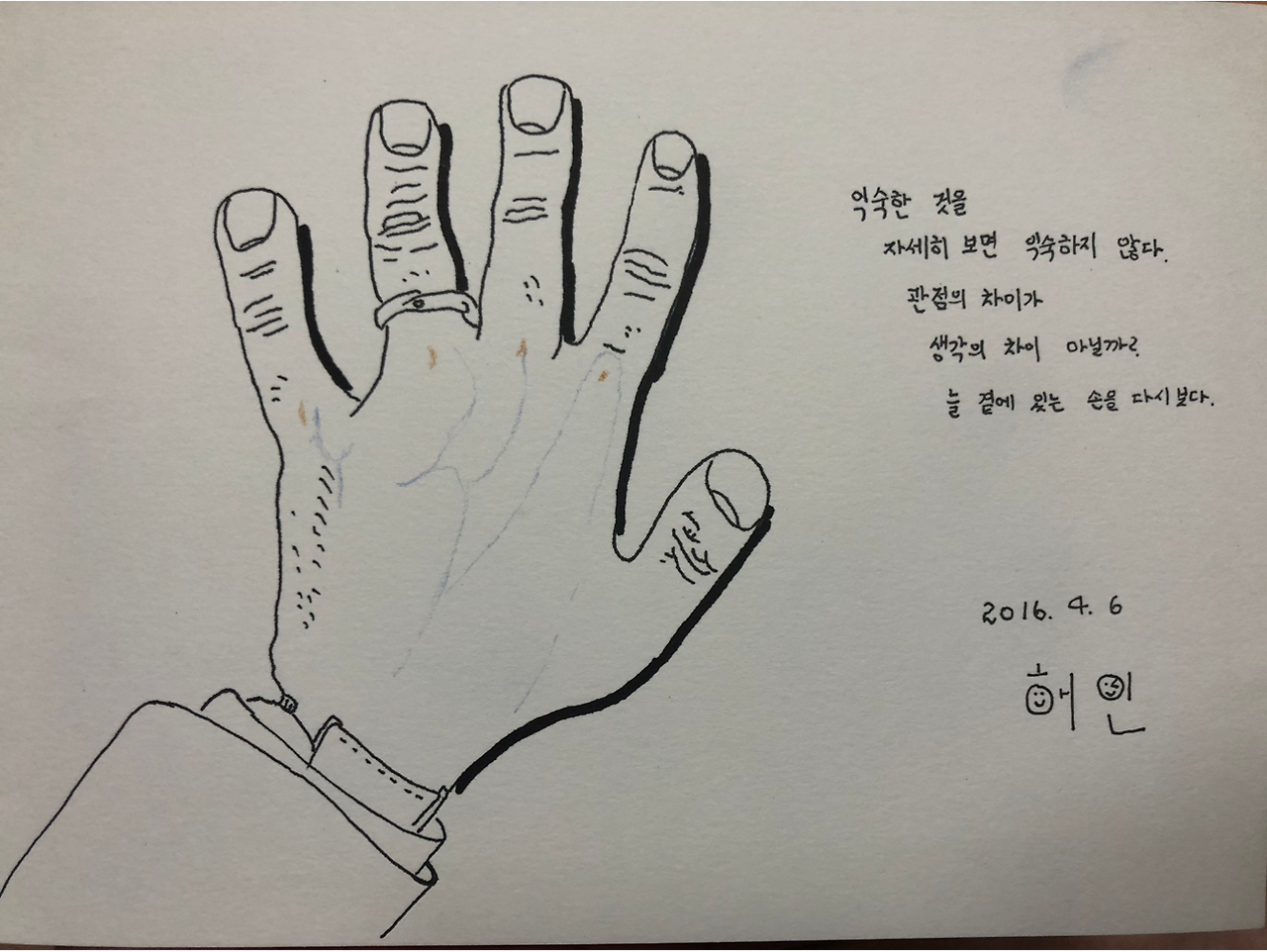 얼굴을 바라보는 만큼 손이나 발을 본다면 다른 모습이 보입니다. 익숙하지만 자세히 보면 다른 법이니까요.