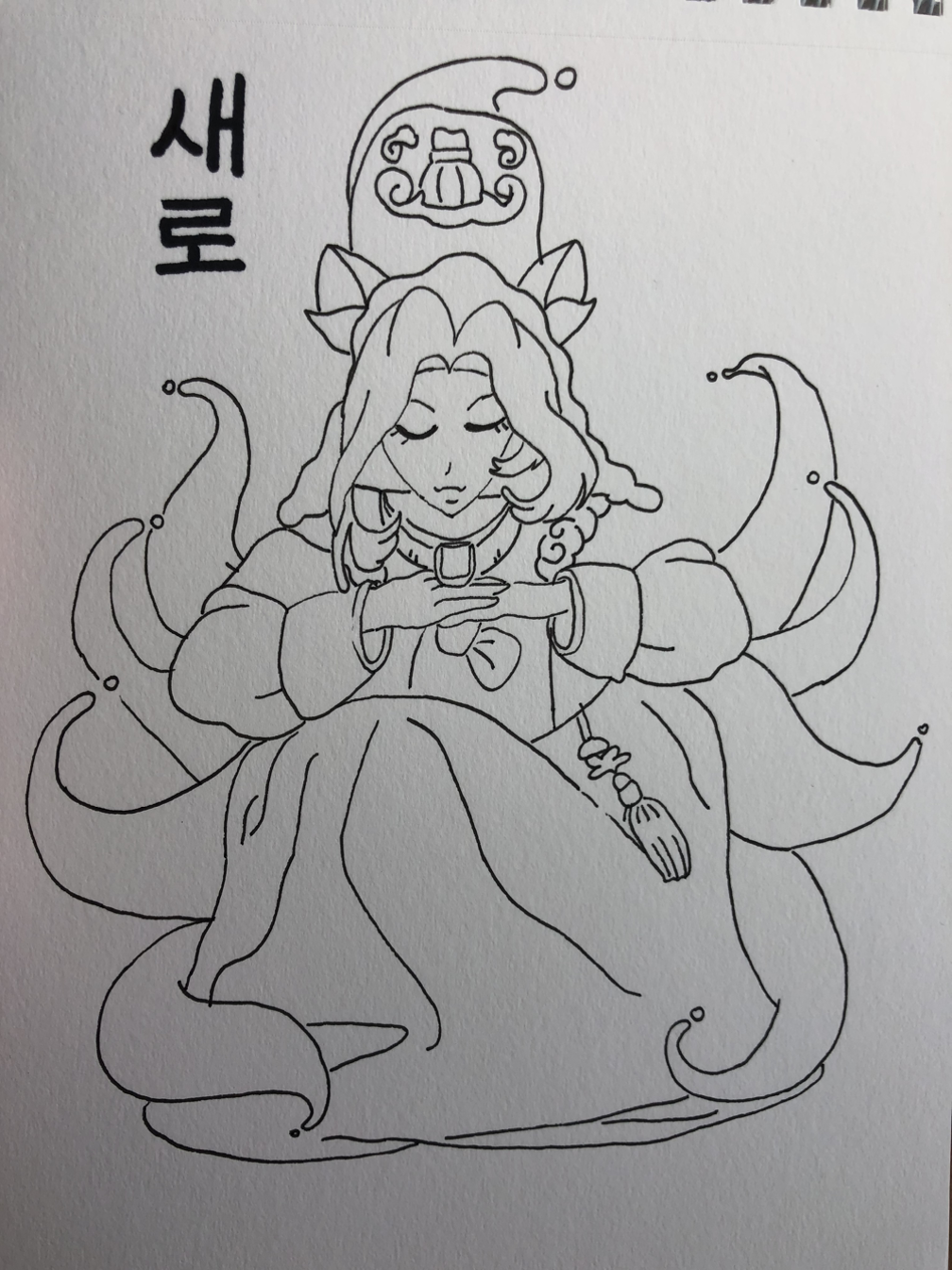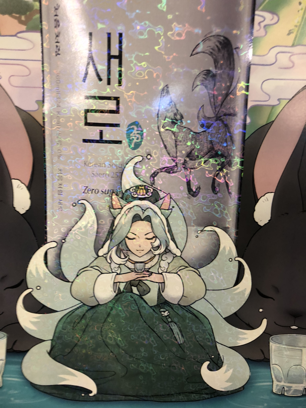 그림 이야기로 돌아갑니다. 꼬리가 아홉 개 달린 구미호입니다. 병에 그려진 그림은 도도하면서 어딘가 신비로운 느낌이 나는데 제가 그리기만 하면 동네에서 지나다닐 것 같은 익숙함이 느껴집니다.