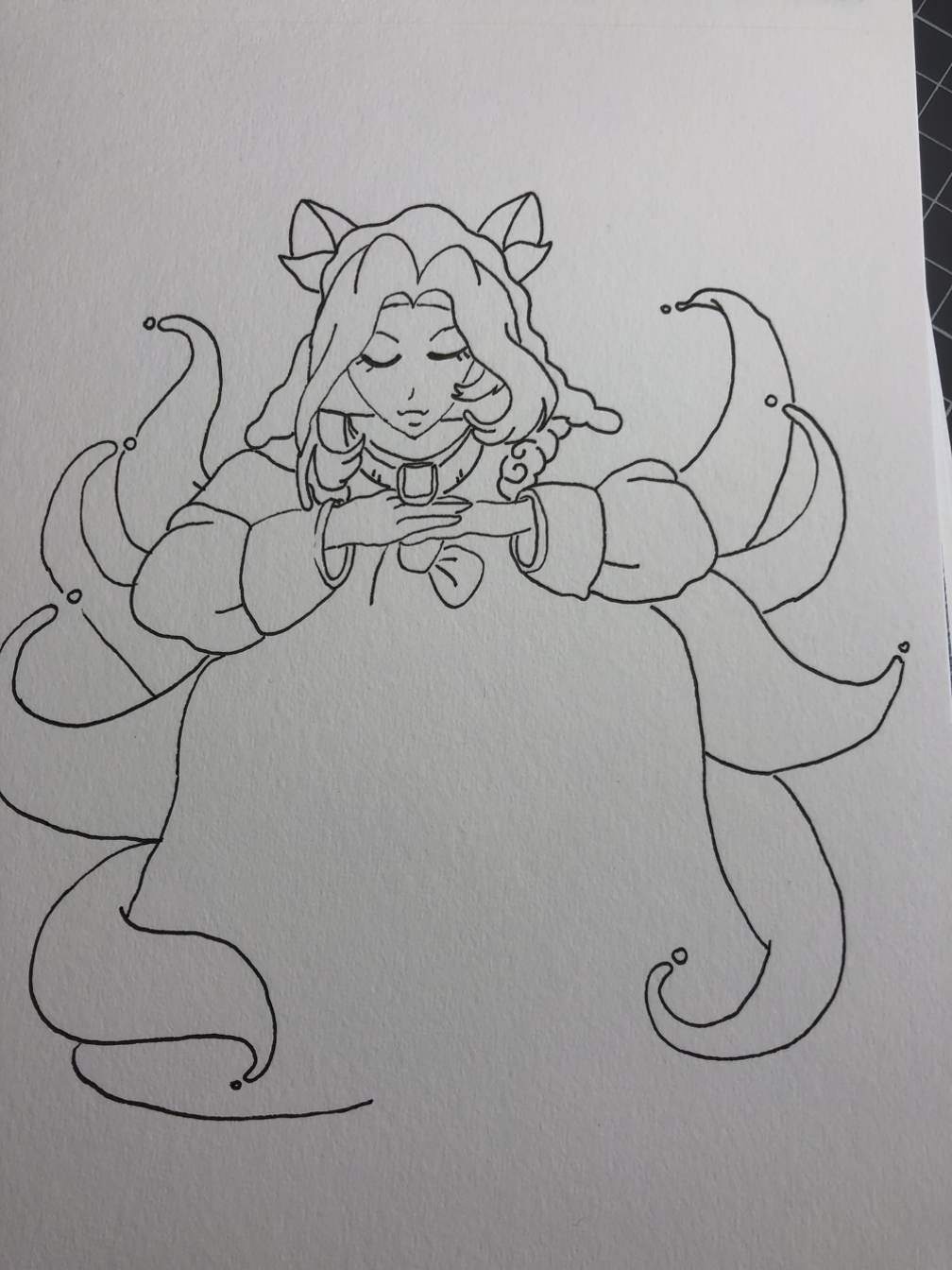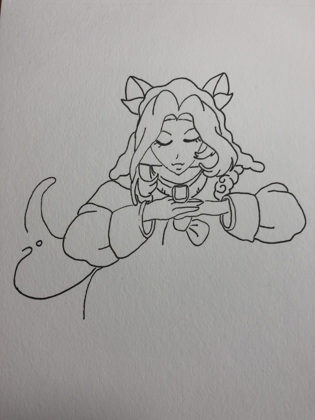 스케치를 마치고 나서 보니 머리 부분 장식이 굉장히 이상하군요. 색칠을 하면 나을까 싶어서 수채화로 채색을 시작합니다.