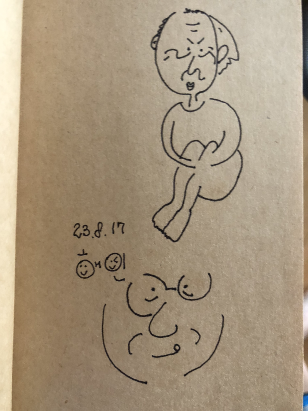 갑자기 딸이 노트에 낙서를 하기 시작합니다. 아빠라며 열심히 낙서를 합니다.