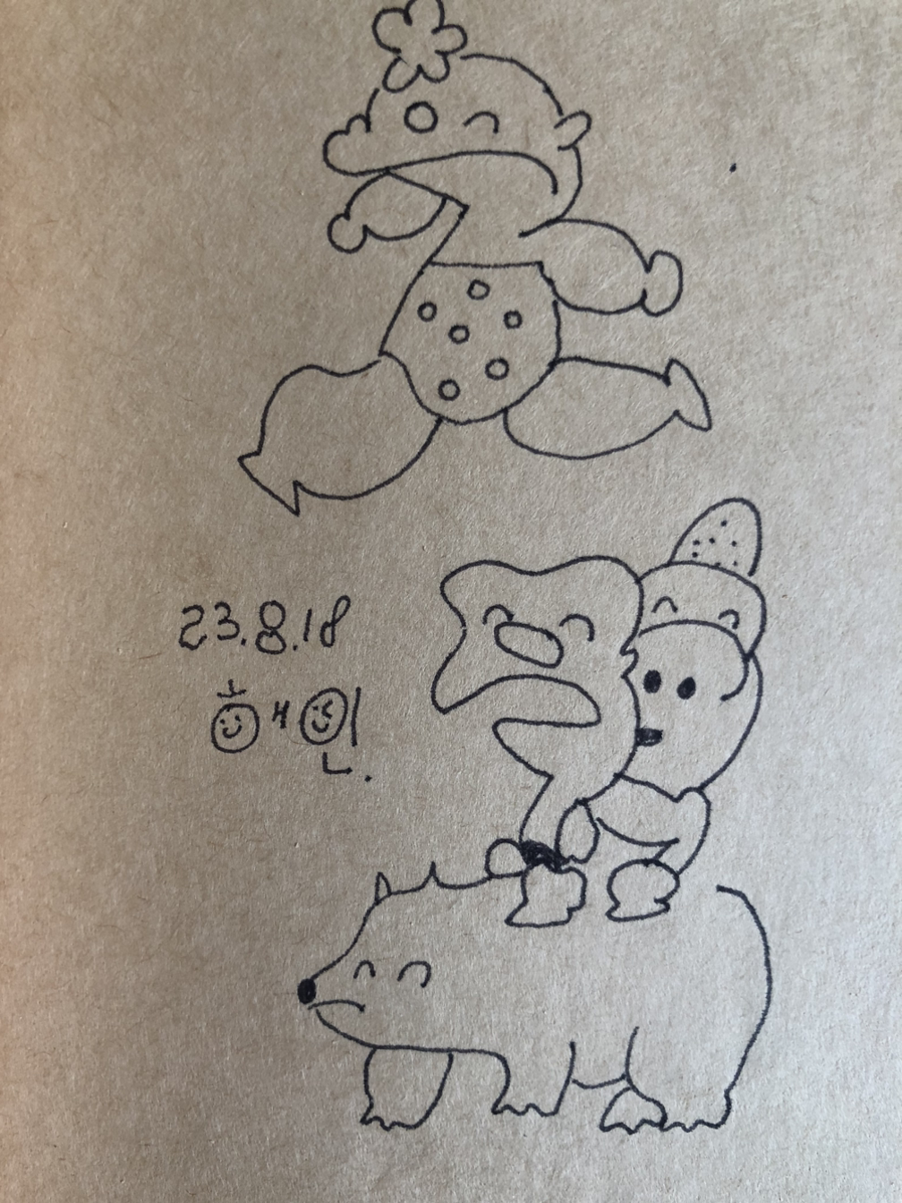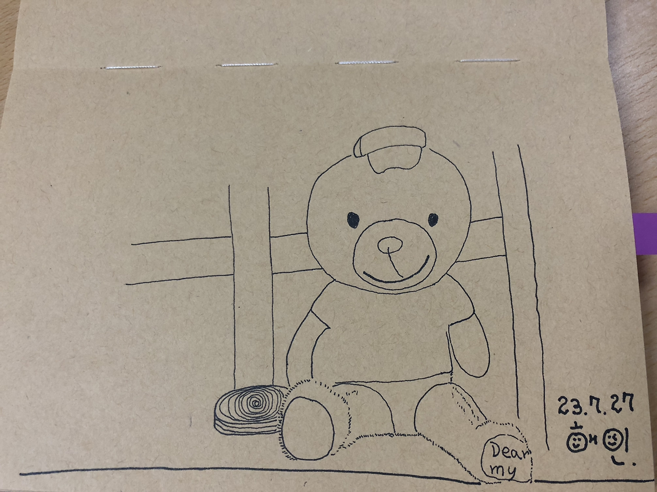 어느 카페에 앉아있던 곰돌이입니다. 도회적인 곰돌이였는데 제가 그리니 시골에서 막 상경한 곰돌이 같네요.
