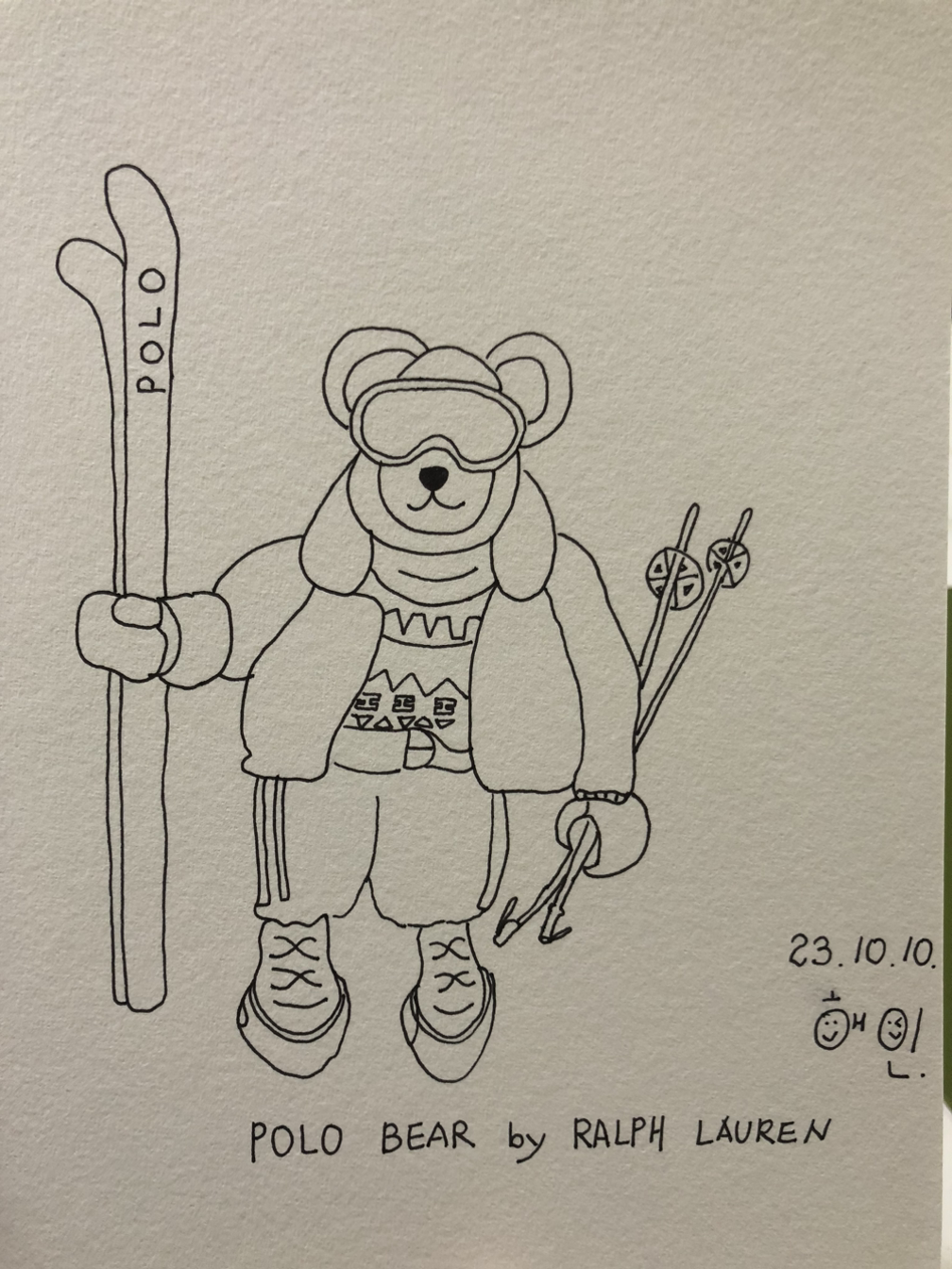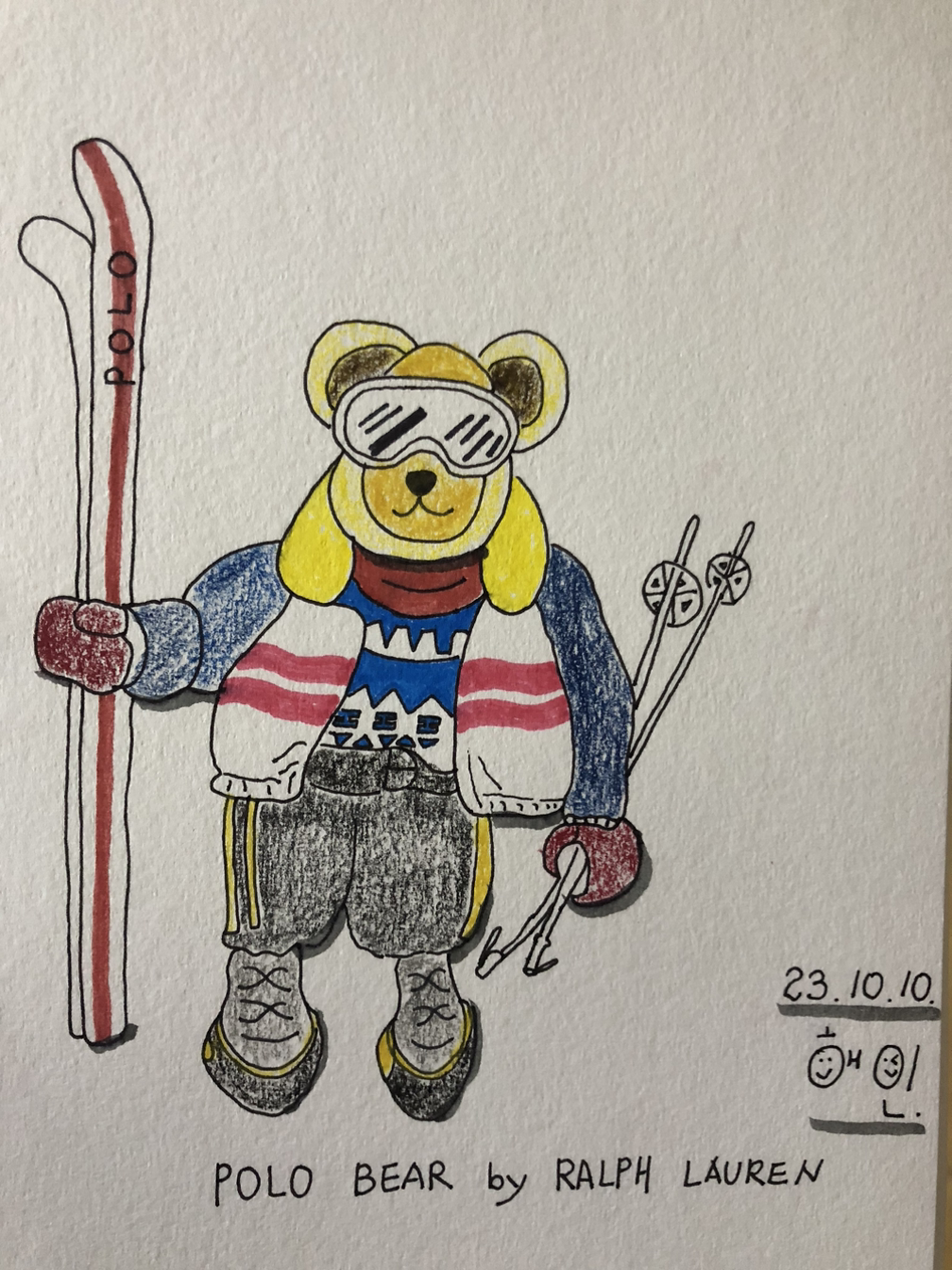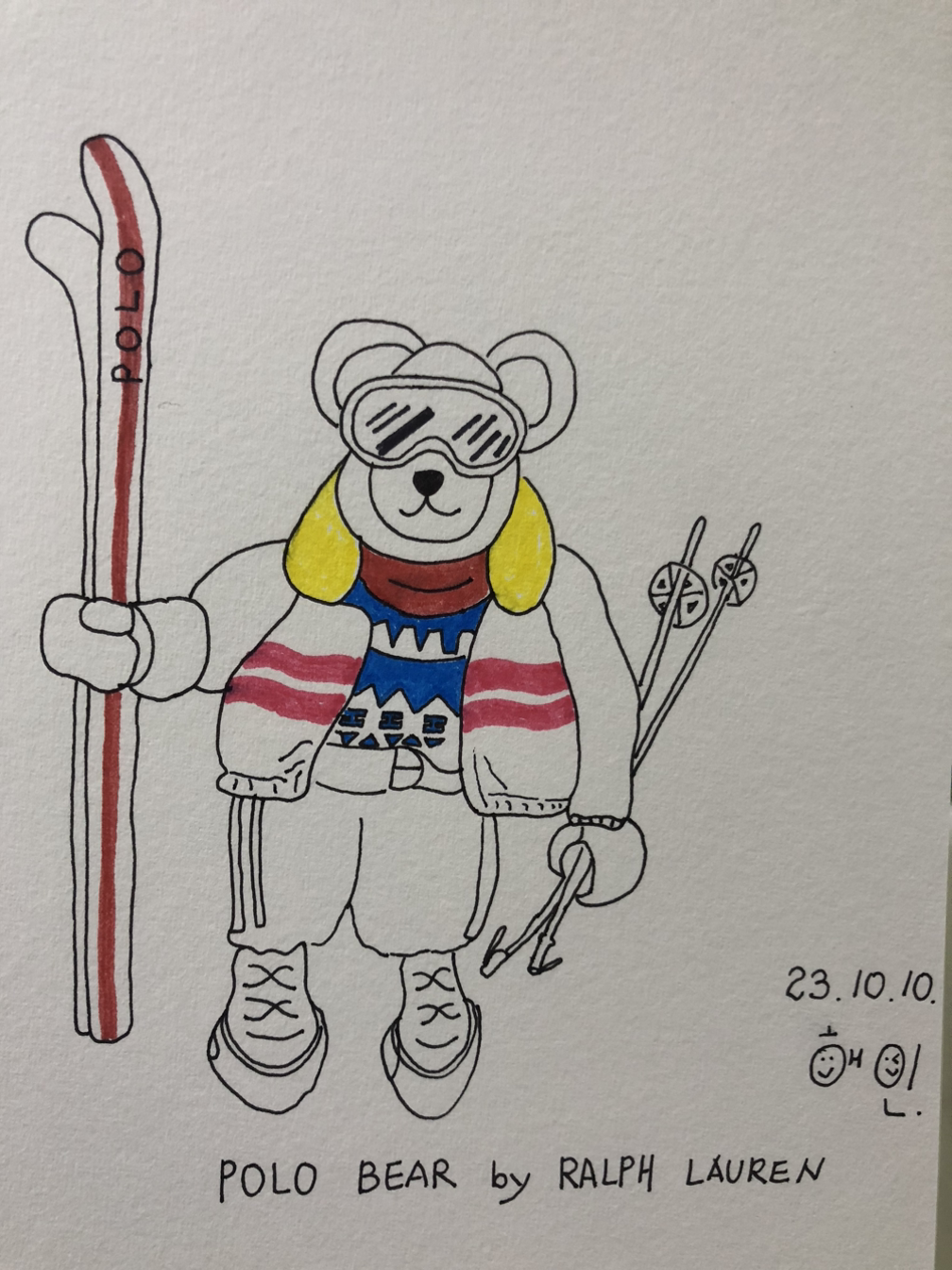 폴라 베어가 스키를 들고 있는 모습입니다.