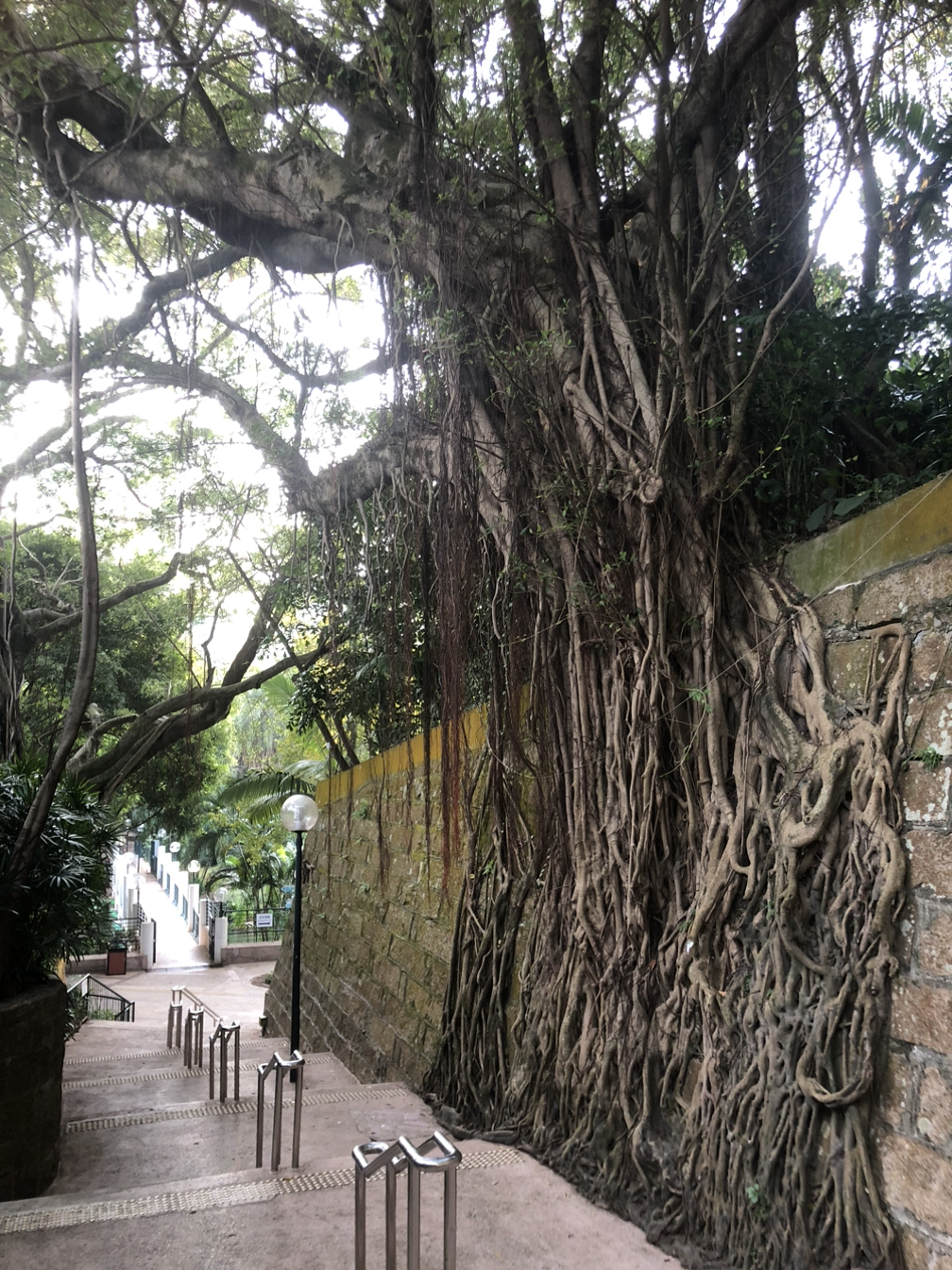 공원에는 중국 반얀트리라고 수염을 길게 늘인 나무들이 많습니다.