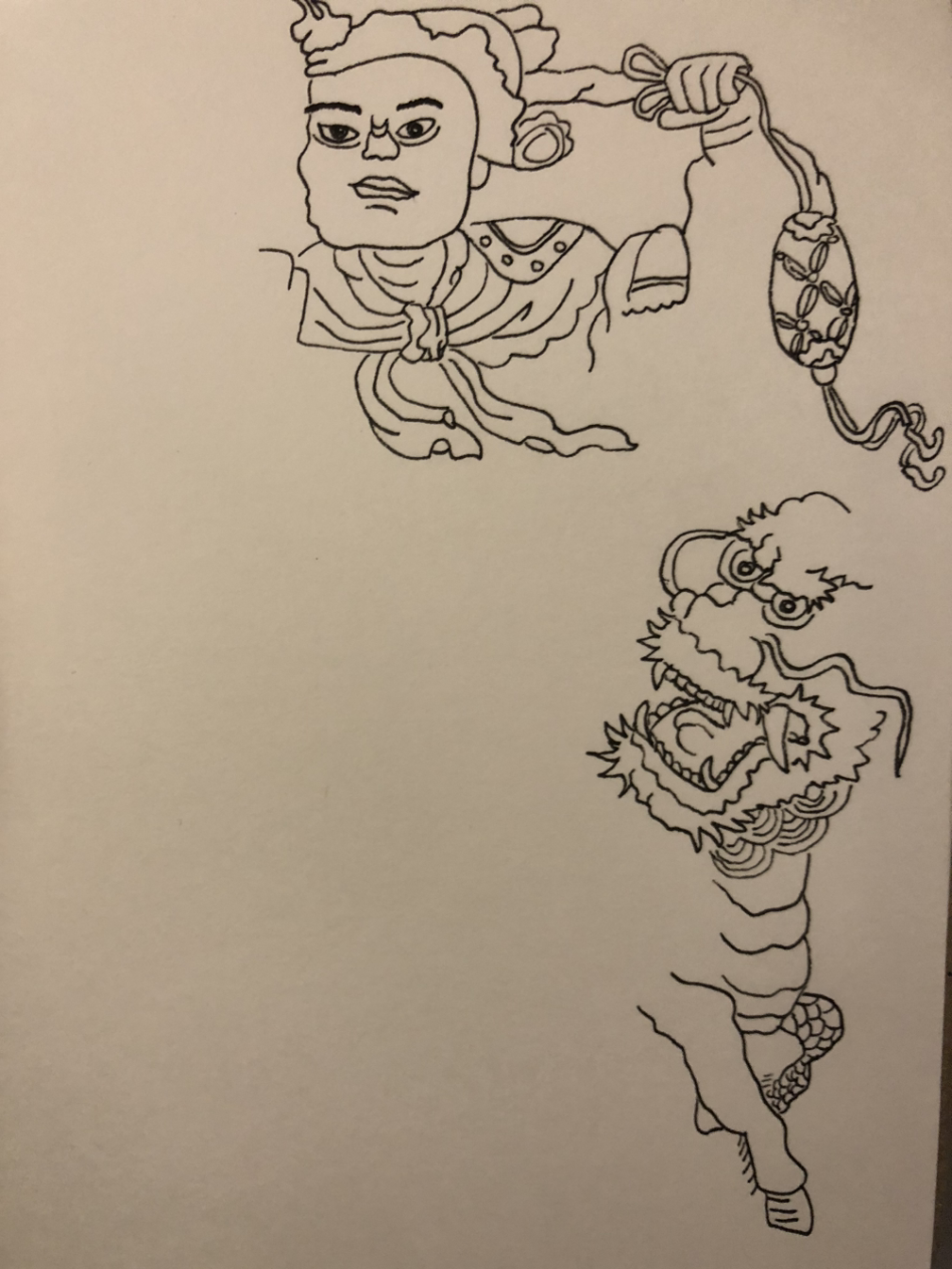 밑에 용이라도 잘 그려야 할 텐데 이빨 달린 고양이 느낌입니다.