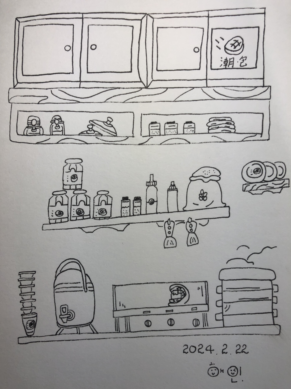 주방의 모습을 그대로 그려놓은 듯한 모습입니다.