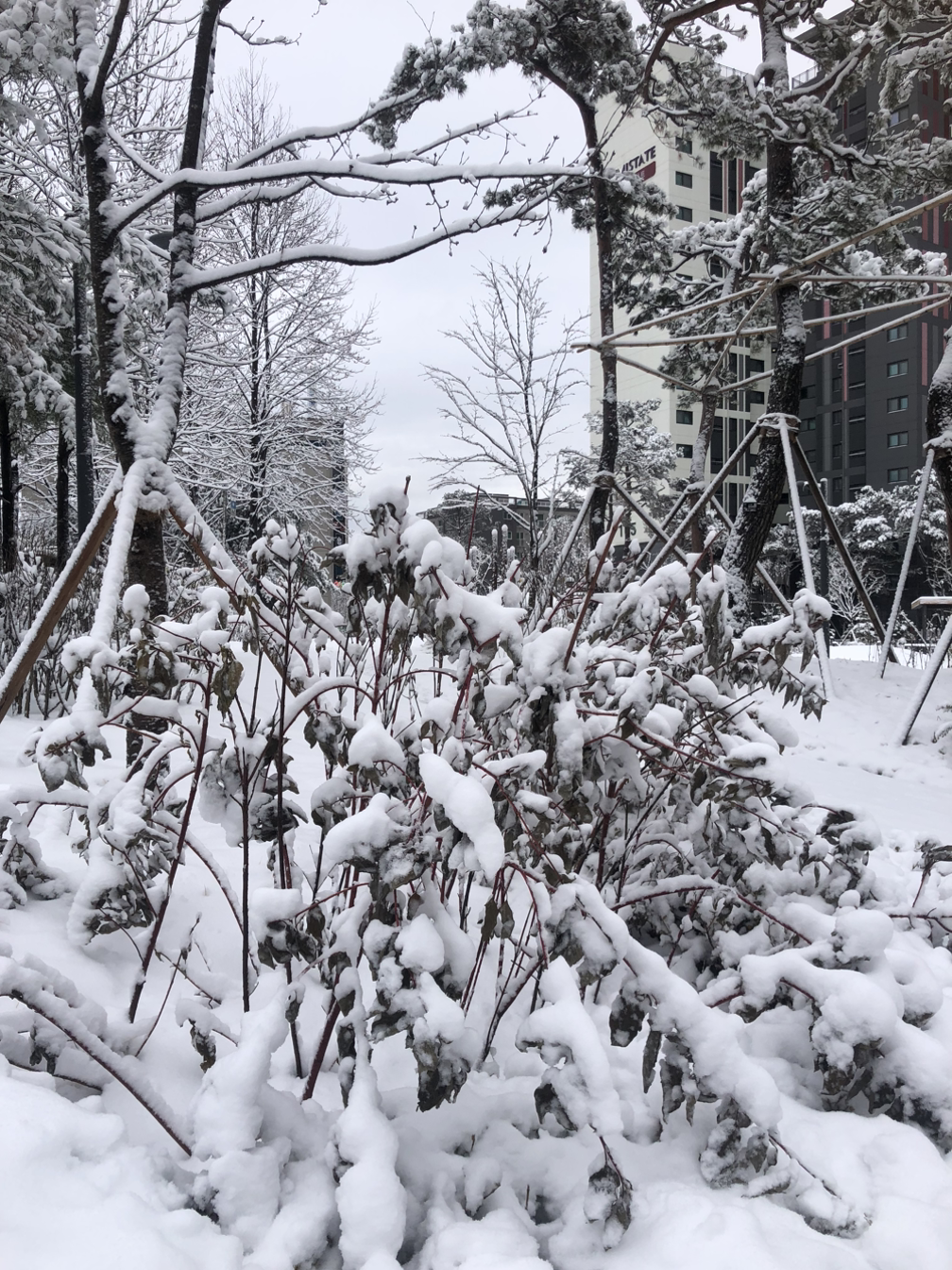 아침에 일어나 보니 온통 세상이 하얗군요. 봄이 오기 전 마지막 눈이 아닐까 싶습니다.