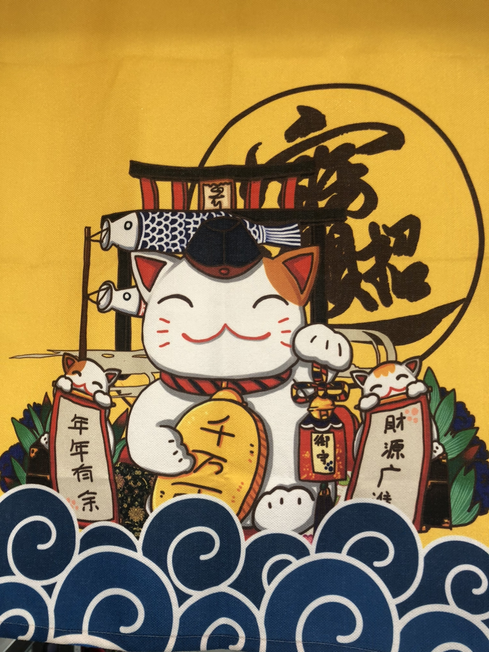 주방에 샛노란 배경에 고양이가 눈에 띄더군요.