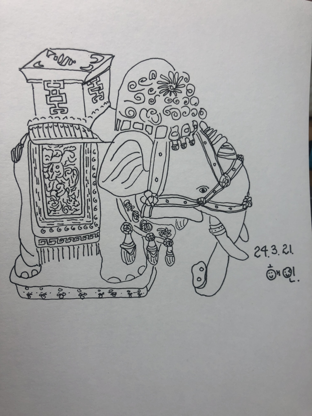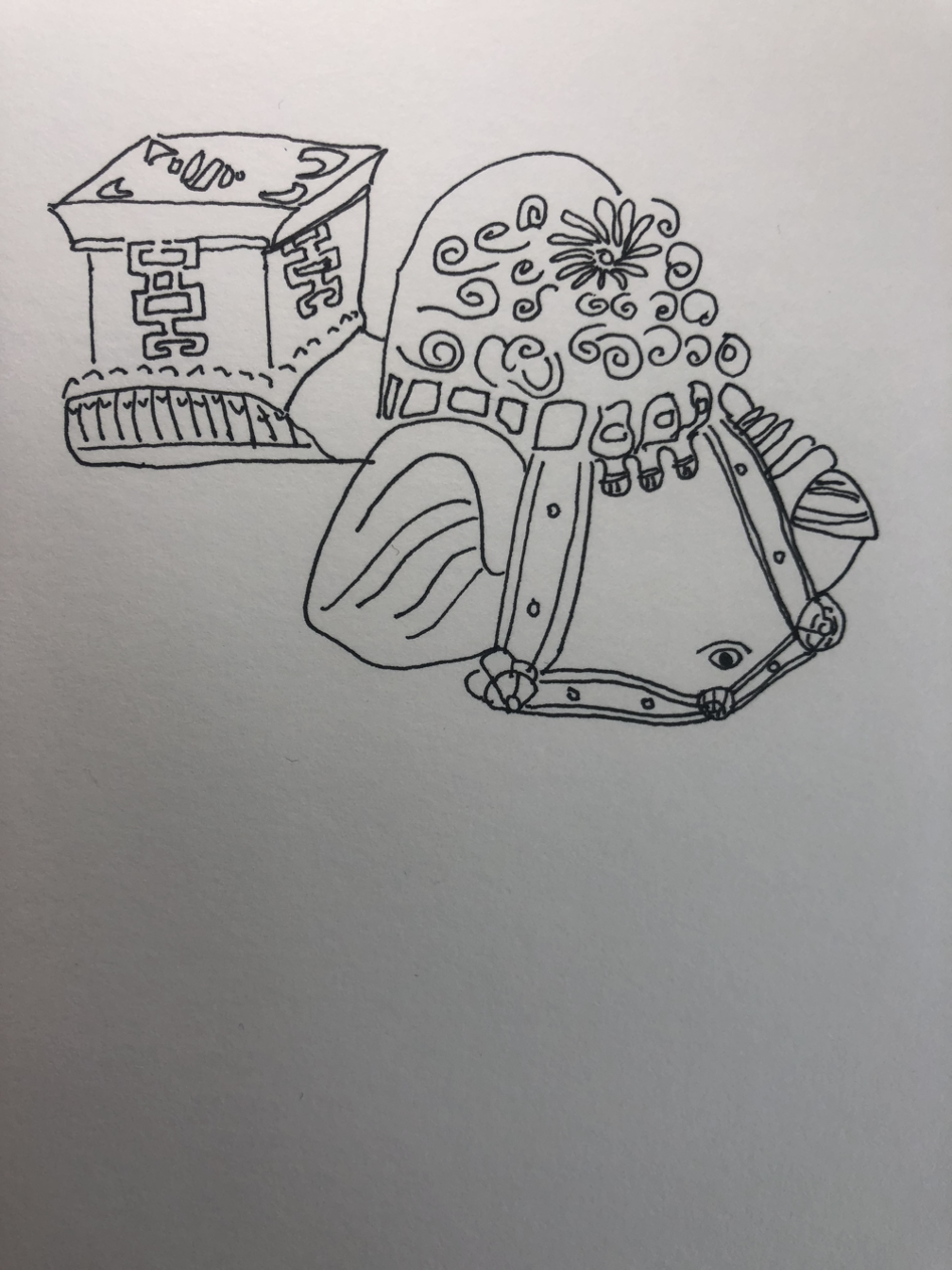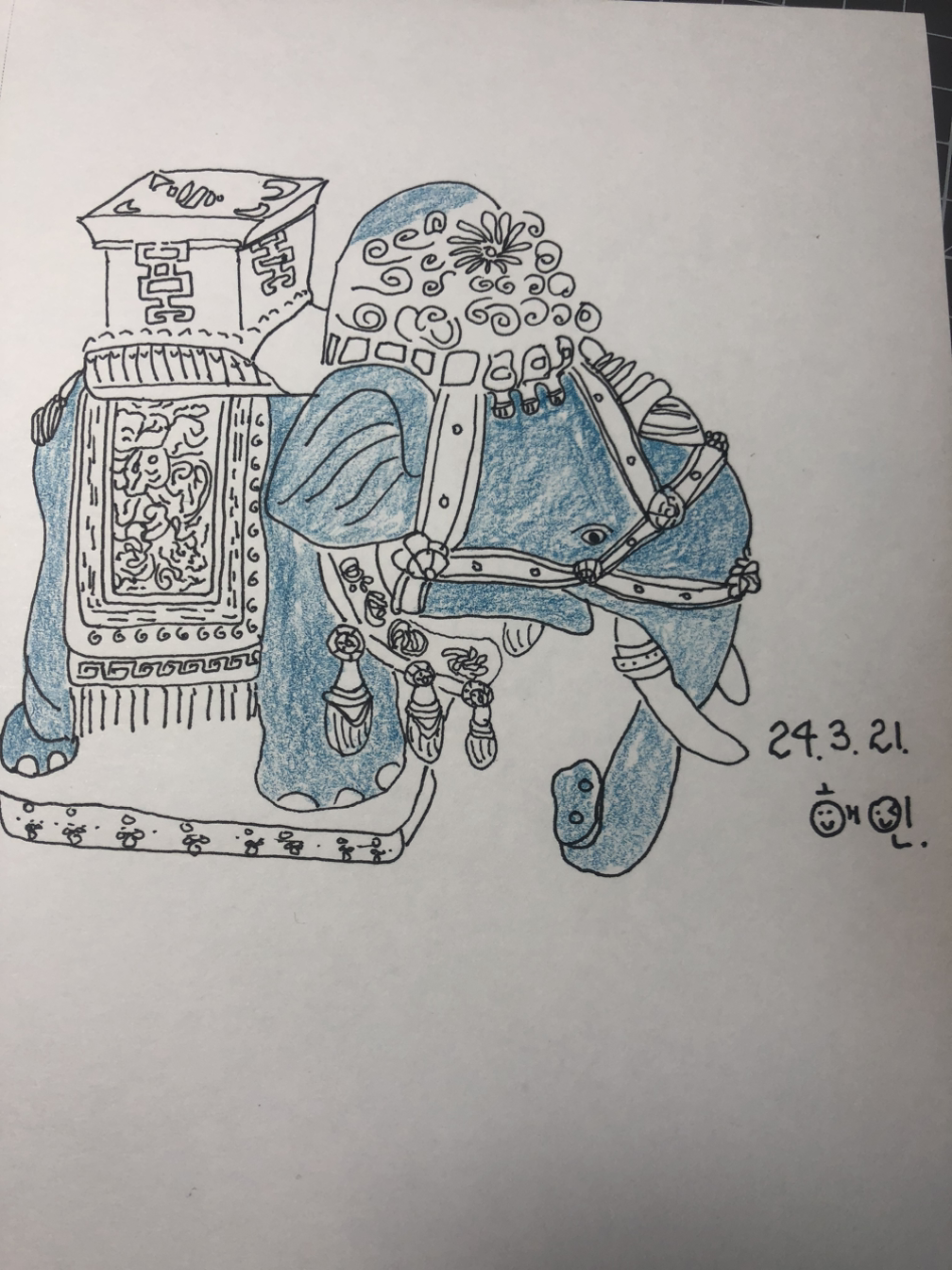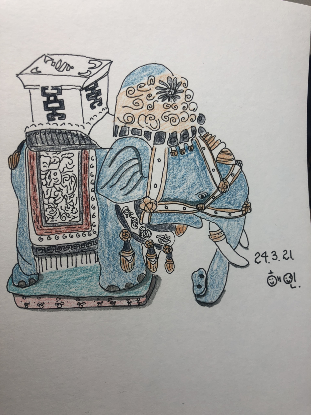 상세 문양은 잘 그리지 못했지만 선으로 이리저리 굴려보며 비슷하게 표현하려 애써 보았습니다.