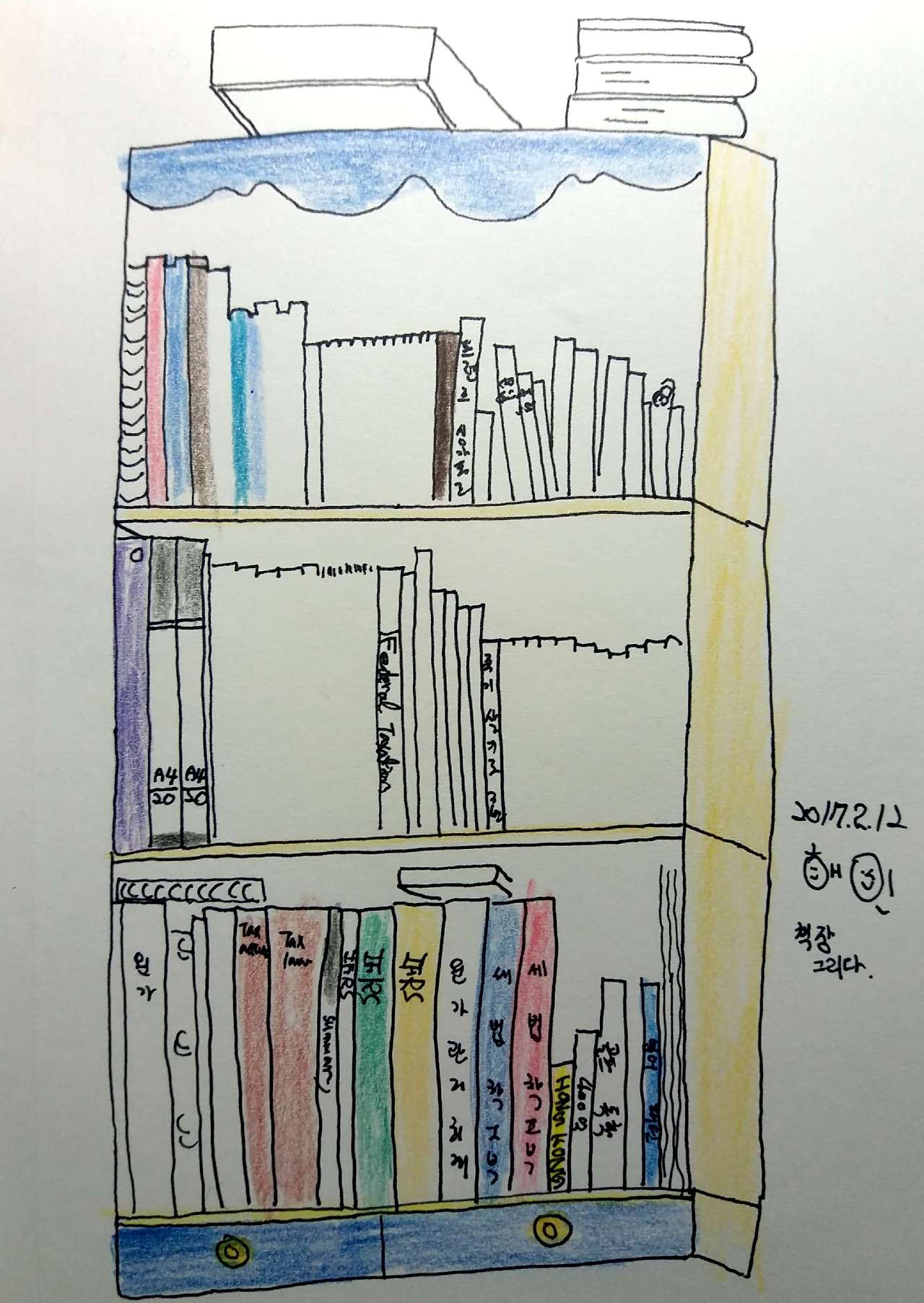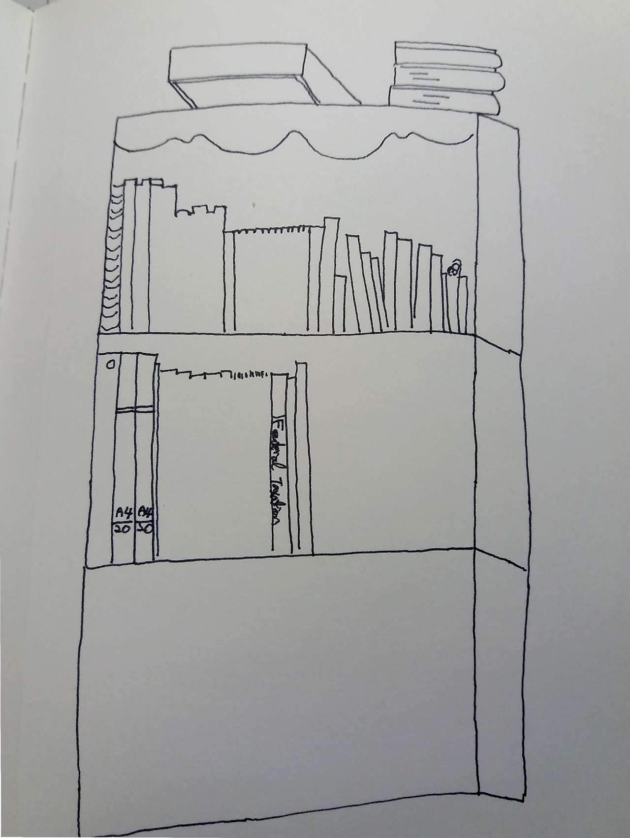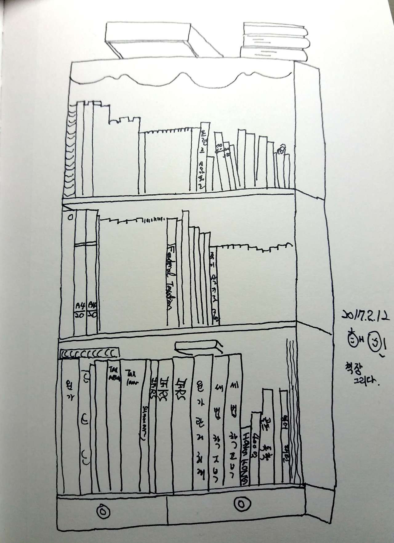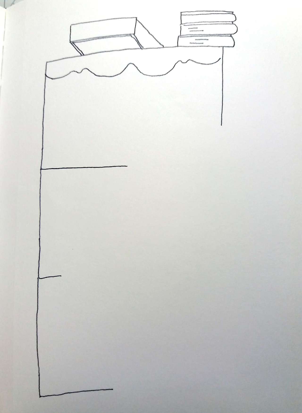 책 하나하나를 그리려다 상단 윤곽만 그리다