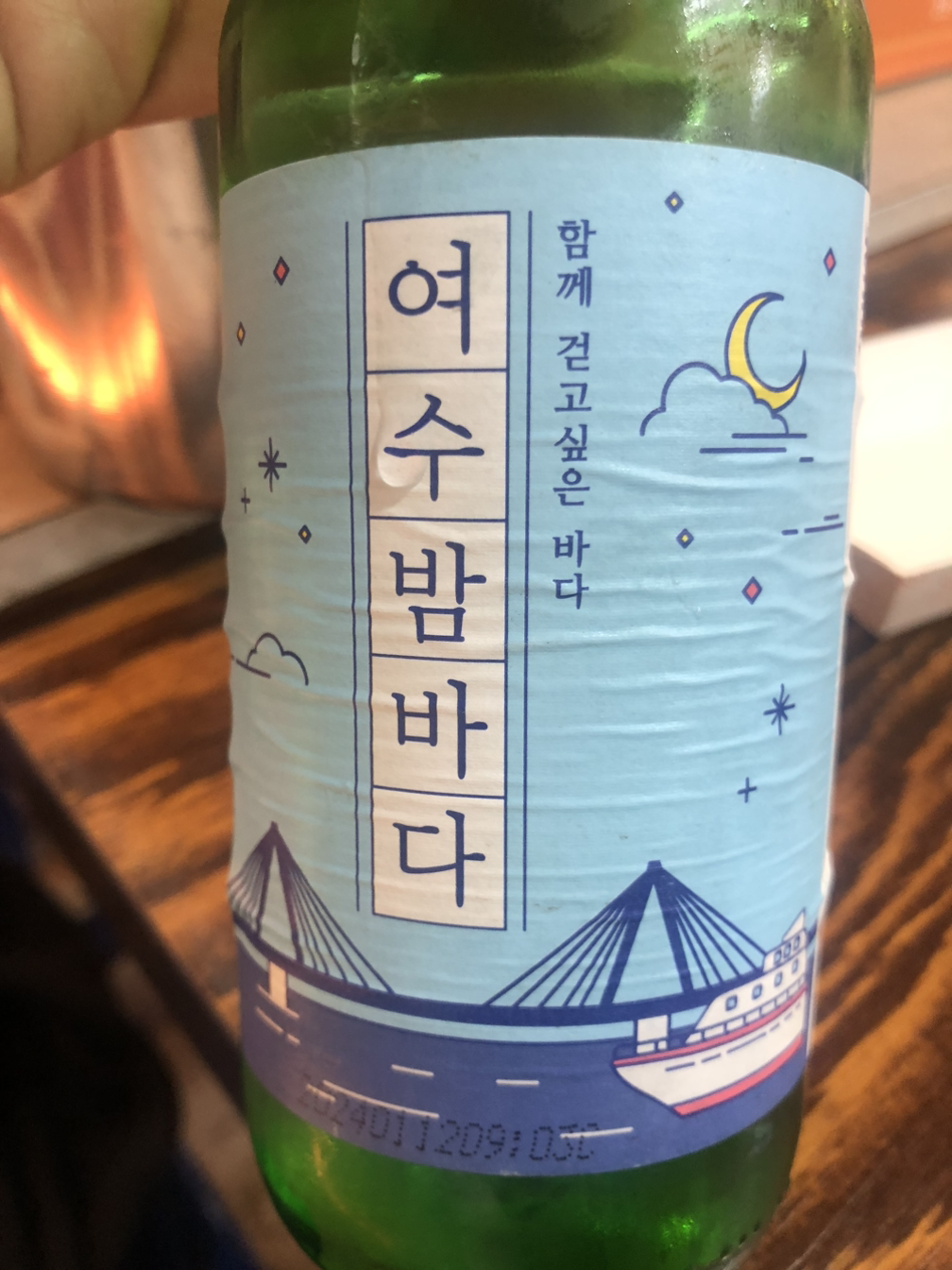 여수 밤바다라는 소주가 있군요. 바다 옆에 있어서 그런지 소주에서 바다 맛이 납니다. 피곤해서 더 그렇게 느껴지겠지요.