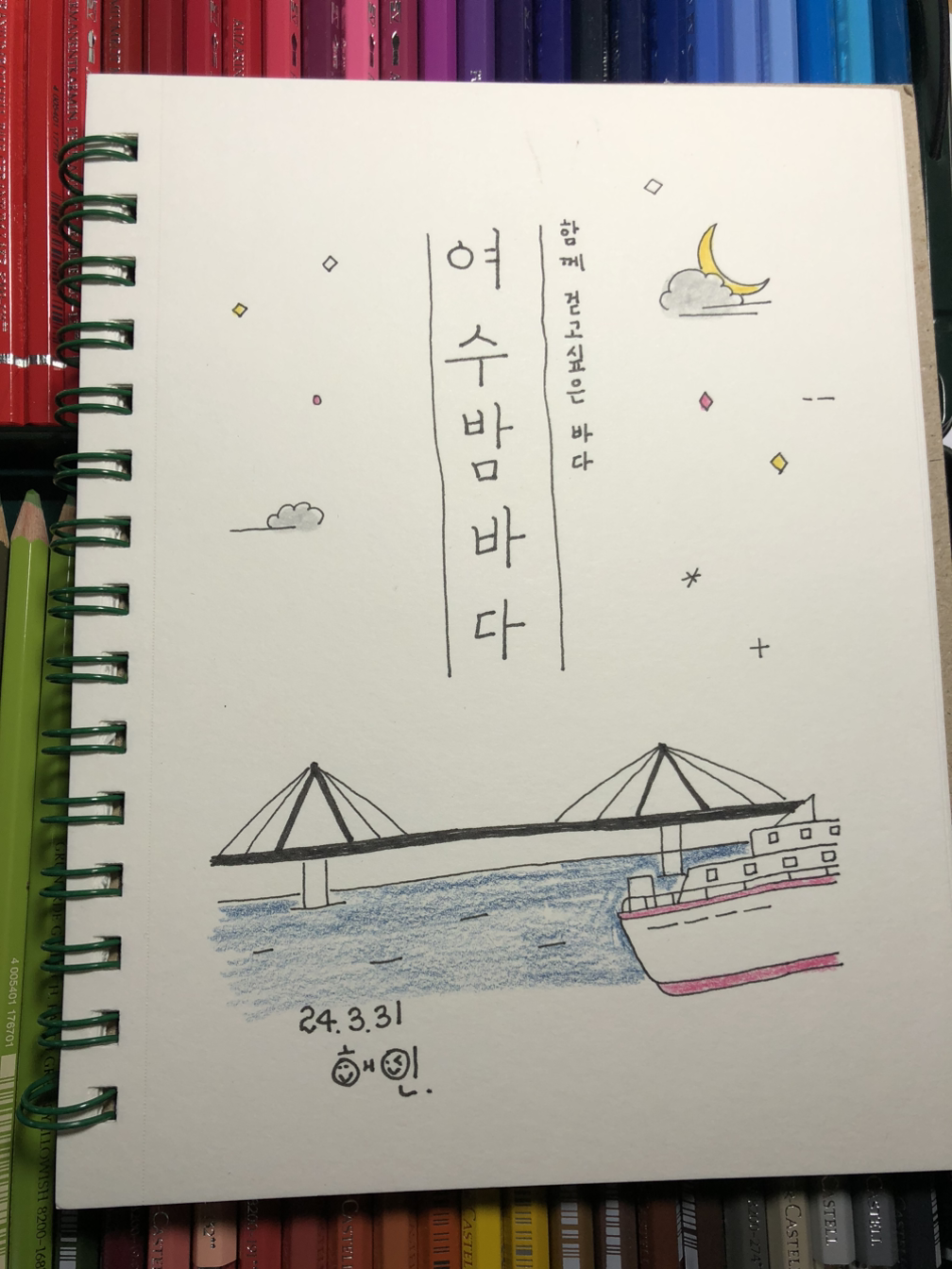 밤바다 주는 묘한 매력이 있군요. 다음에는 조금 더 따뜻한 날씨에 밤바다에 들러봐야겠습니다. 오늘 그림은 초간단 그림이네요. 더 그리려다가 여기서 멈춥니다.