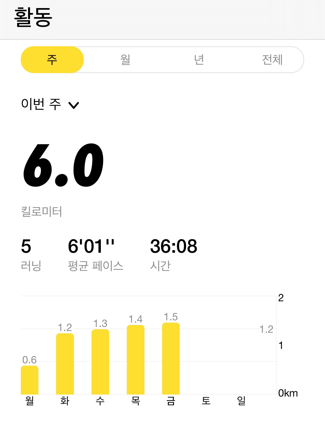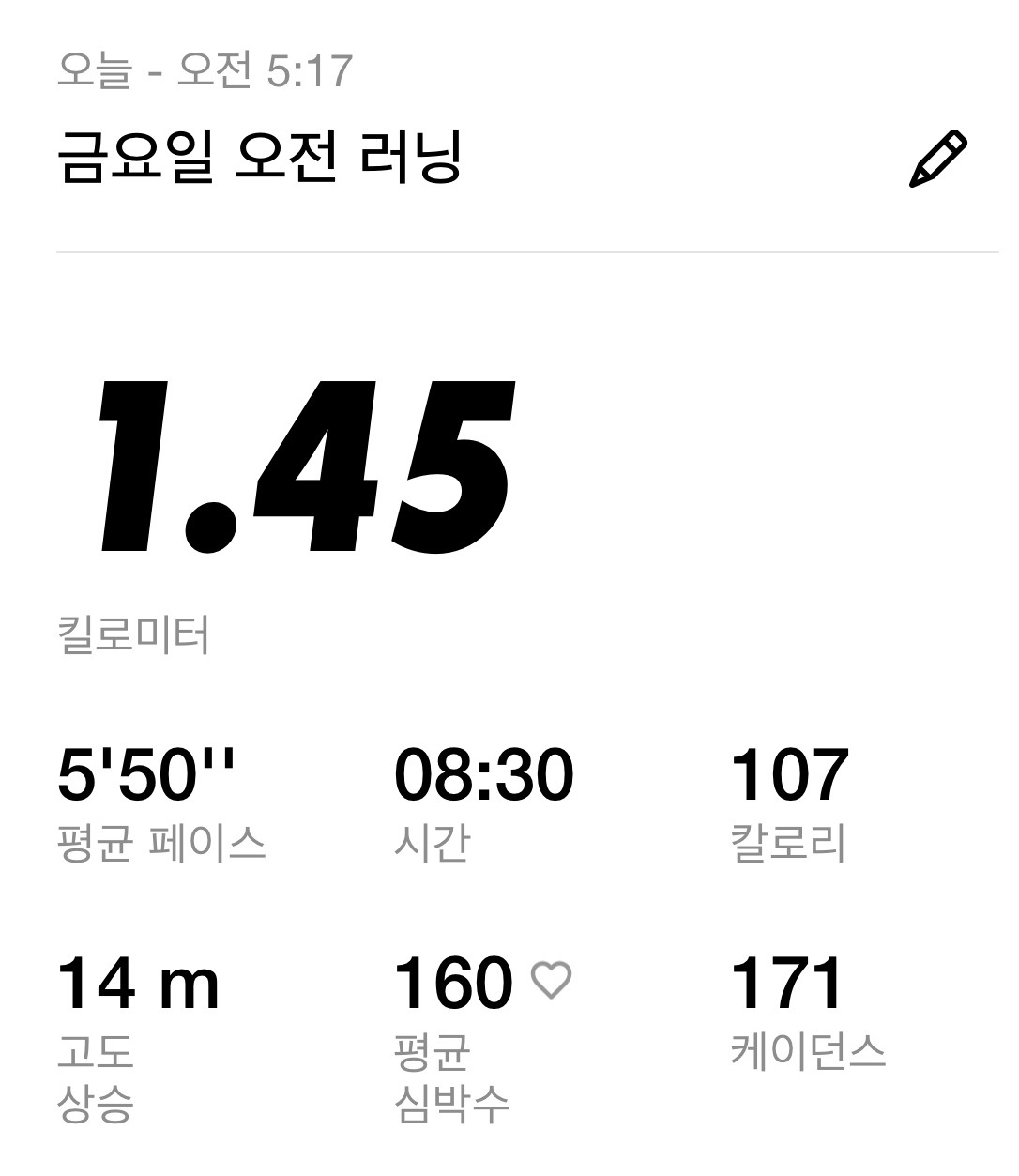 거리는 많이 늘었습니다. 제가 목표로 하는 거리는 3~5km, 시간은 3~40분 정도입니다. 아직은 거리도 1.5km에 시간도 10분 미만입니다. 크게 부담이 없는 거리죠.