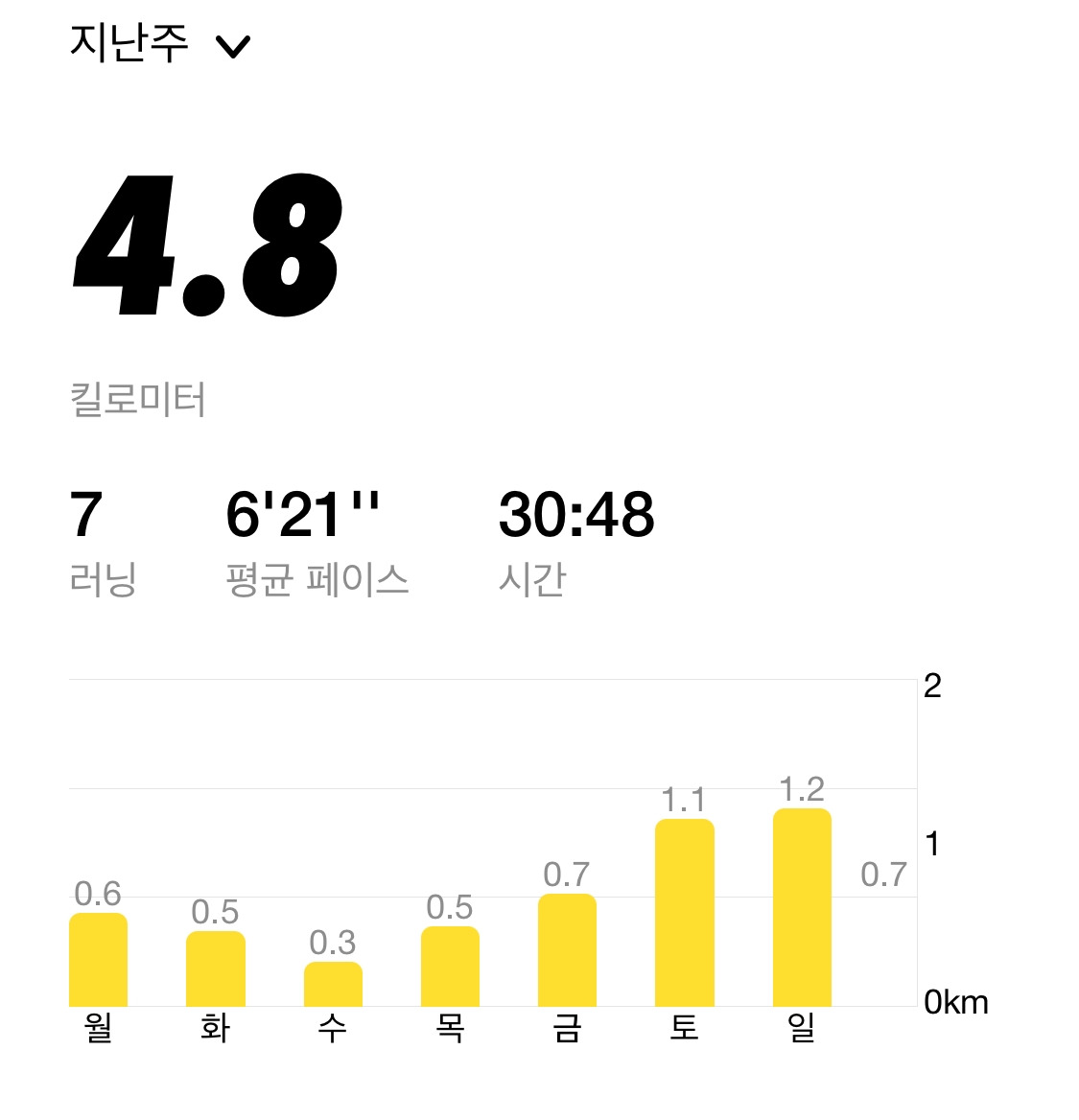 어제보다 10미터만 더 뛰자는 생각으로 운동하고 있습니다. 아직까지는 거의 하루 100미터 정도씩 늘어나는 편이군요. 욕심 같아선 2km는 훌쩍 넘길 수 있을 것 같은 느낌입니다. 하지만 한 번에 멀리 달리기보다는 매일 꾸준히 늘리려고 노력 중입니다.