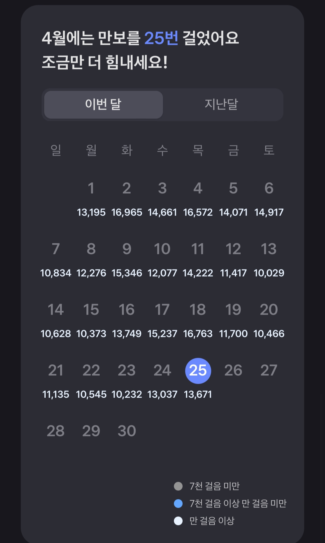 지난달에는 꾸준히 거리를 늘리려고 애썼습니다.