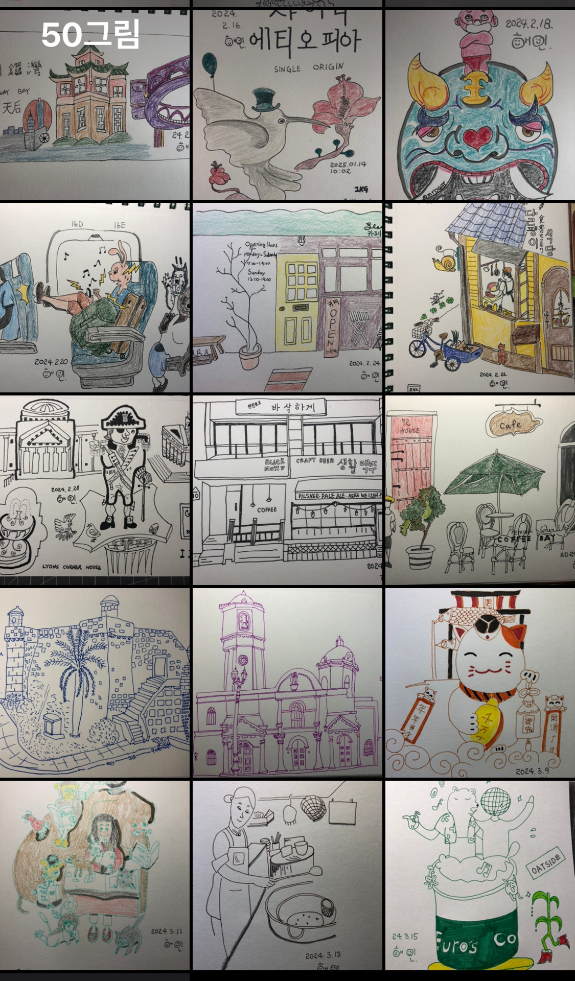 50개의 그림을 그리기 위해 거의 반강제적으로 그렸네요. 그림 속에 무언가 항상 부족한 느낌이 가득한데 어떻게 해소해야 할지 아직 감이 잡히지는 않네요. 시간이 지나면 해결이 될까요?