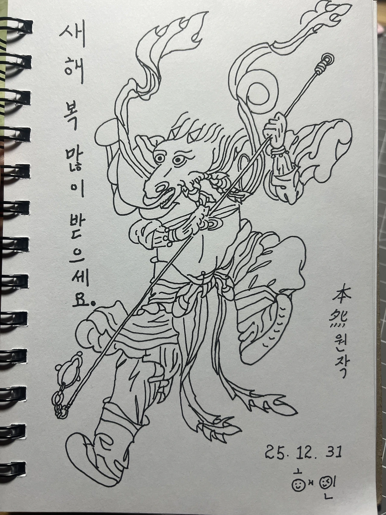 돌이켜보면 십이지신 그림을 그리기 시작한 것이 벌써 몇 년째입니다. 처음 그릴 때는 서툴기만 했던 손길이 이제는 조금 자신감 있게 움직입니다. 눈에 보이지 않는 발전이라도, 매년 이맘때 같은 것을 반복하다 보니 조금씩 나아지고 느낌이 이제는 듭니다.