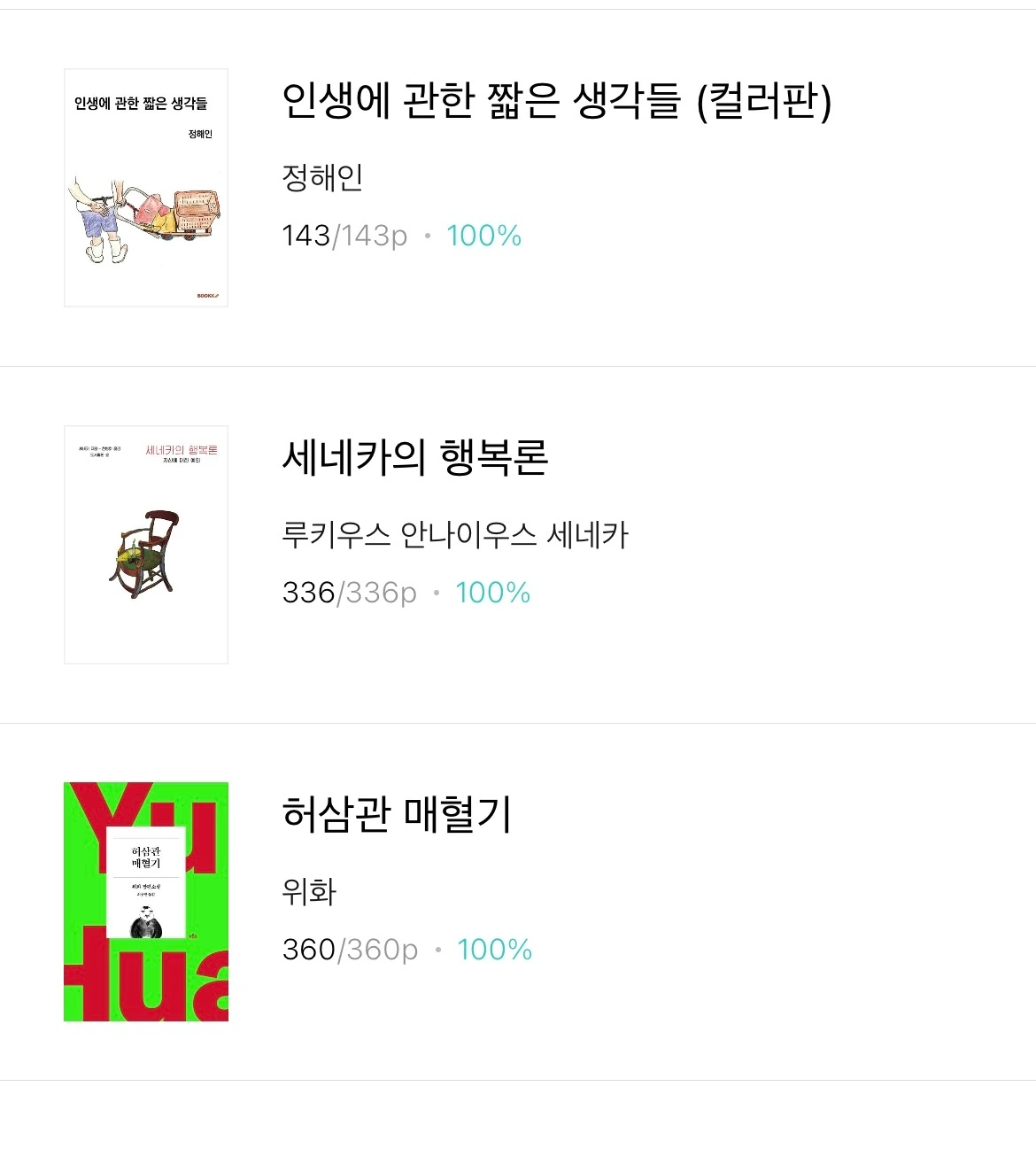세네카의 『행복론』(https://brunch.co.kr/@hermite236/1969)을 읽으며 스토아 철학의 지혜를 되새겼고, 위화의 『허삼관 매혈기』(https://brunch.co.kr/@hermite236/1968)를 읽으며 인간의 끈질긴 생명력과 가족에 대한 사랑을 느꼈다. 내가 쓴 『인생에 관한 짧은 생각들』도 다시 읽었다. 예전에 썼던 문장들이 지금의 나에게 새롭게 다가왔다.