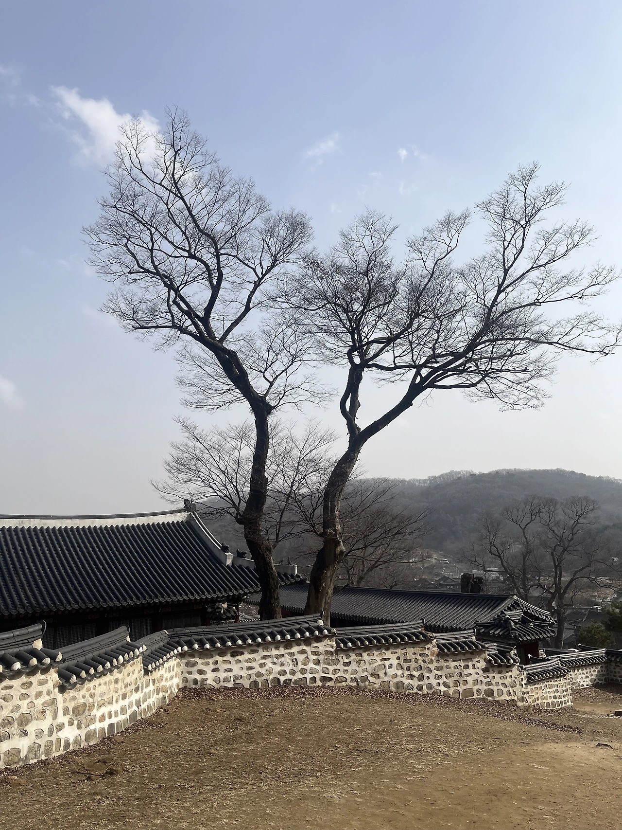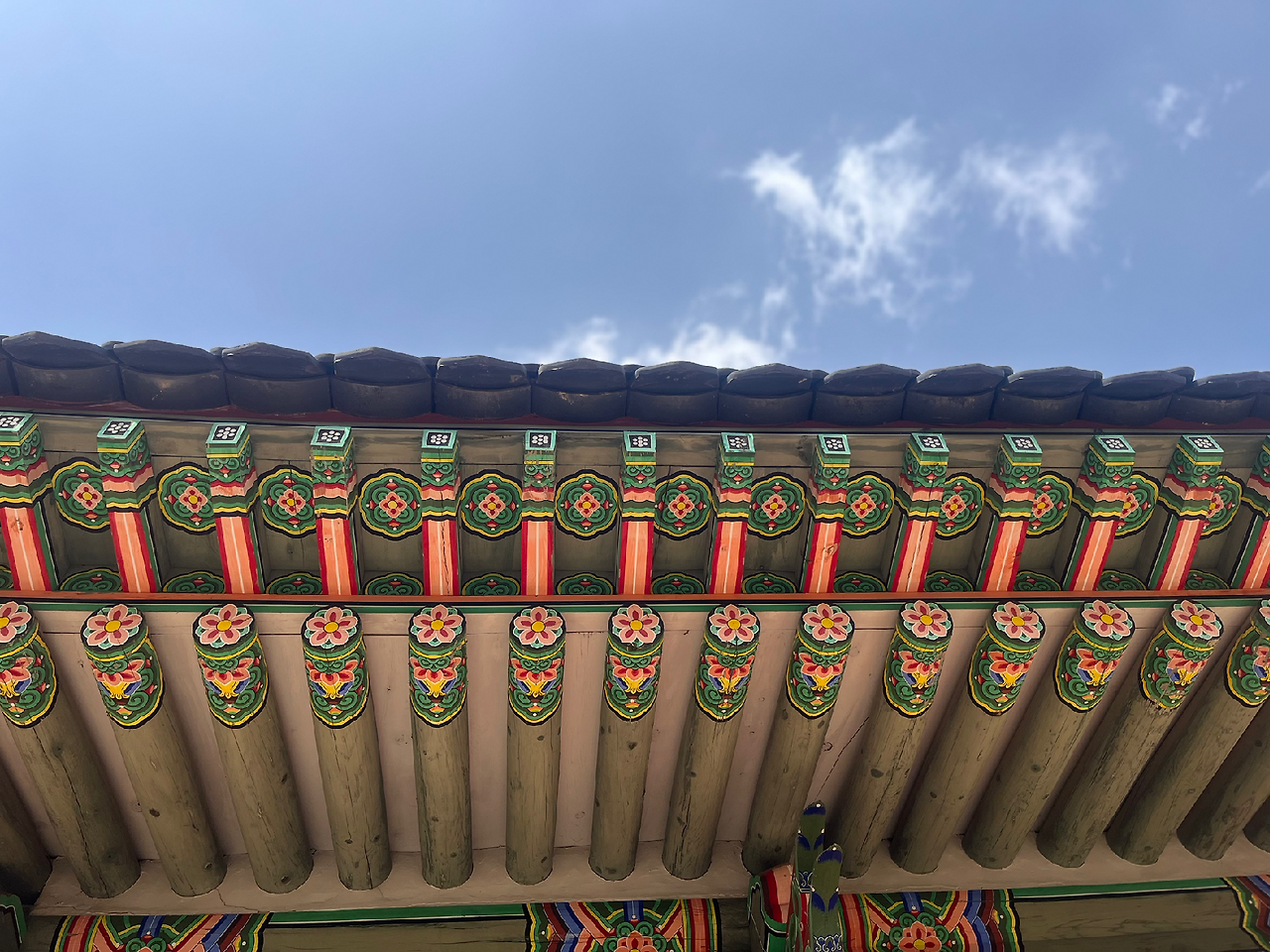 외행전 집무실을 지날 때, 문득 고개를 들어 본 처마의 곡선과 단청의 색감이 유난히 아름답게 다가왔다. 비록 황사가 섞였을지언정, 푸른 겨울 하늘과 대비되는 선명한 지붕의 채색은 보는 이의 마음을 사로잡기에 충분했다.
