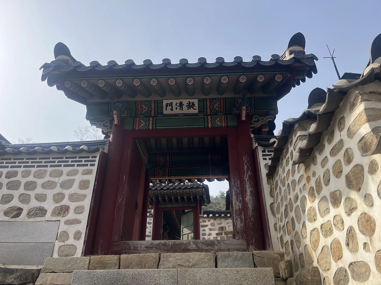 한참을 걷다 한자로 적힌 응청문(凝淸門) 앞에 멈춰 섰다. 사실 처음 "응(凝)"한자가 눈에 잘 들어오지 않아 주머니 속 AI에게 물어보니 '맑은 기운이 모이는 문'이라는 뜻이더라. 그 뜻을 알고 나니 탁한 공기 속에서도 왠지 맑은 기운이 몸 안으로 스며드는 기분이 들었다.