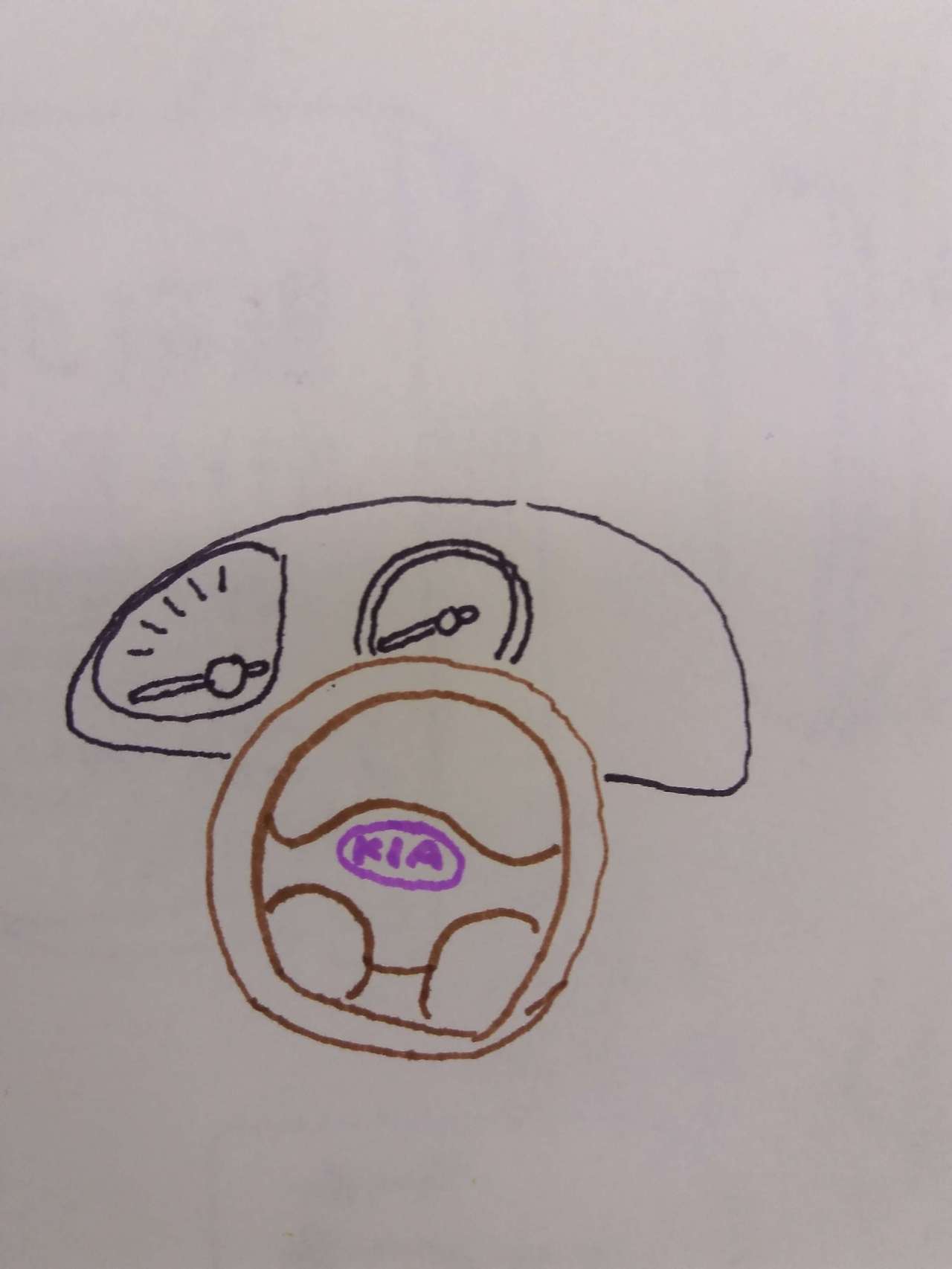 차 안에서 기다리며 계기판과 운전대를 그리다