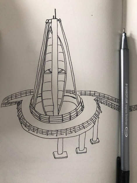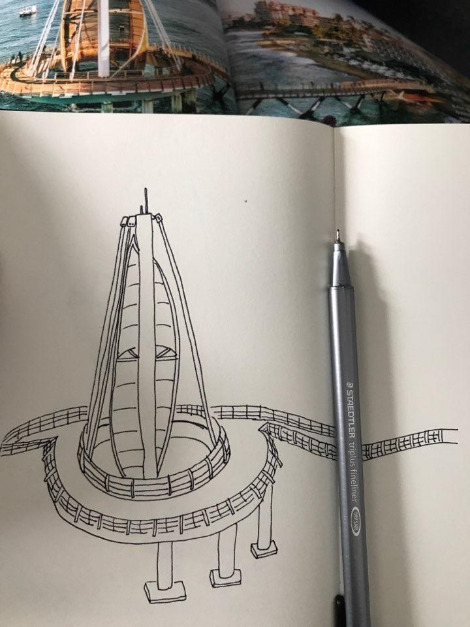 바쁜 아침 책상에 앉았다 펜을 들고 그림을 그리기 시작했다
