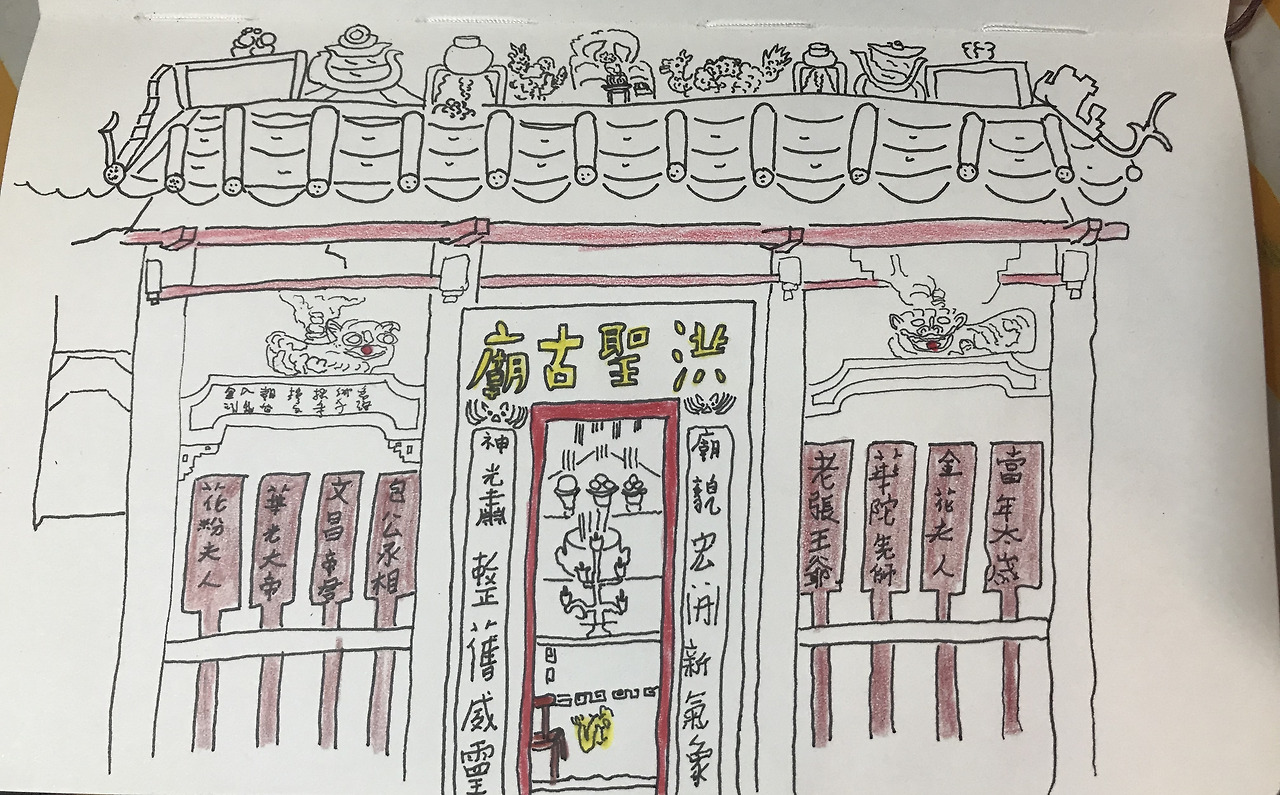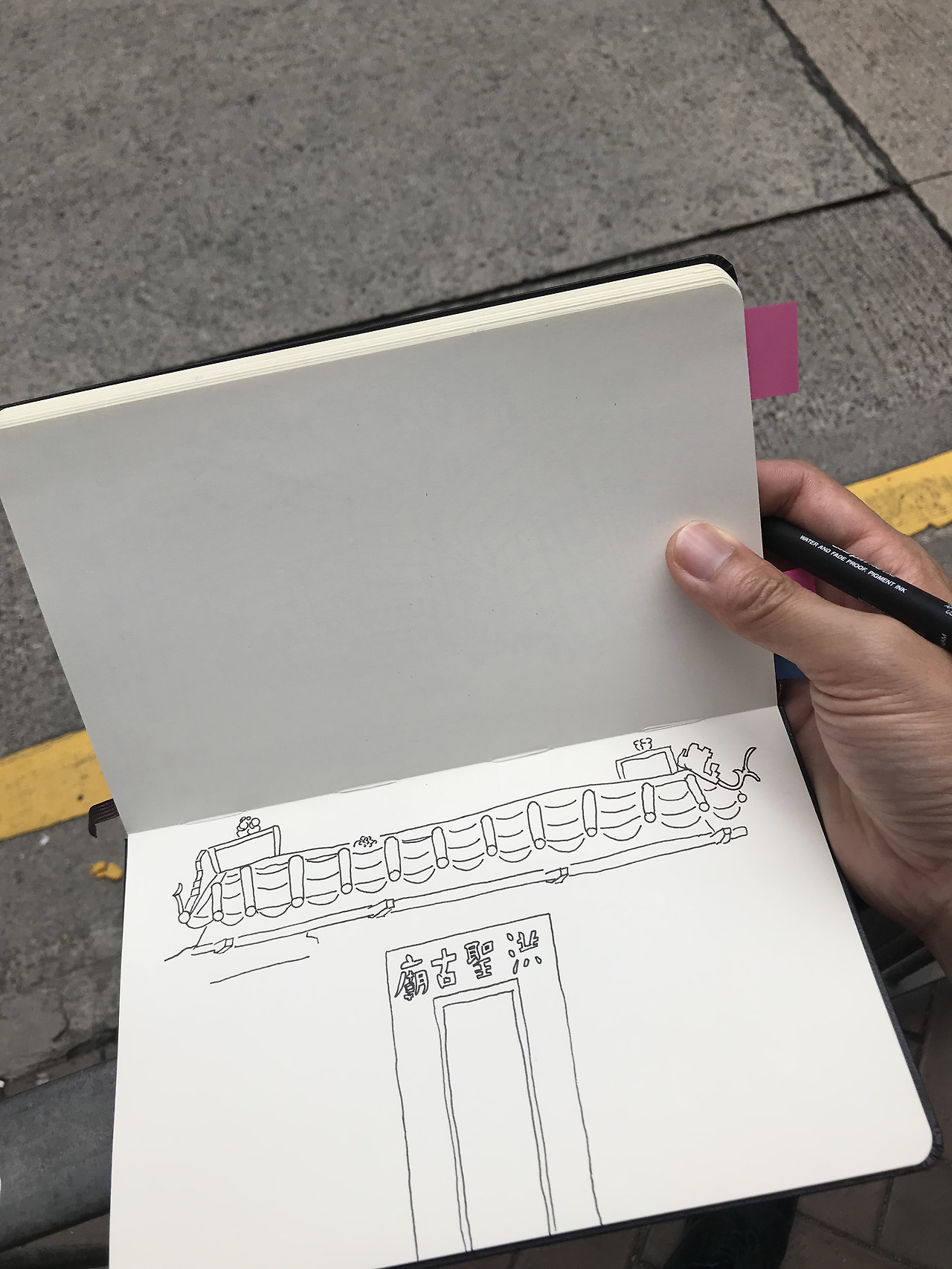 몇 일 뒤 다시 찾은 사원 스케치는 다 되어 가고