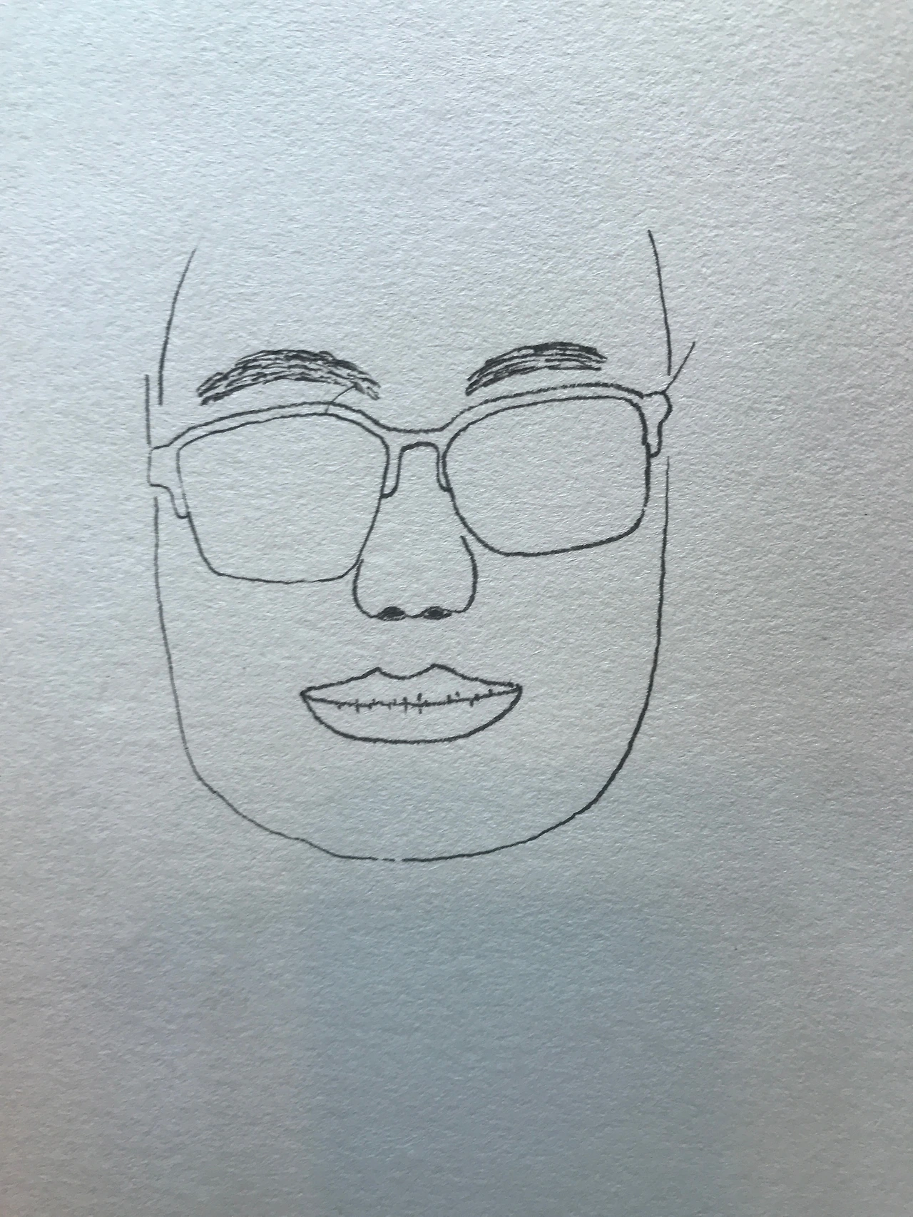 우선 안경 모양부터 그려보았다. 얼굴의 제일 중심을 차지하고 있고 그나마 모양이 가장 단순해 보였다.
