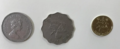 홍콩의 동전들은 앞면이 모두 같다. 보헤니아라고 불리는 홍콩을 상징하는 꽃이 공통적으로 들어가 있다. 다만 동전의 모양과 크기가 다를 뿐이다. 굴곡진 모습을 표현했는데 실제와는 다른 모습이 되어 버렸다.