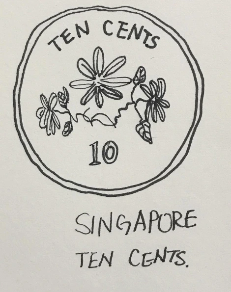 미국 동전이 많아서 이번에는 싱가포르 동전을 그려보았다. 무슨 꽃인가 했더니 재스민이라고 한다.