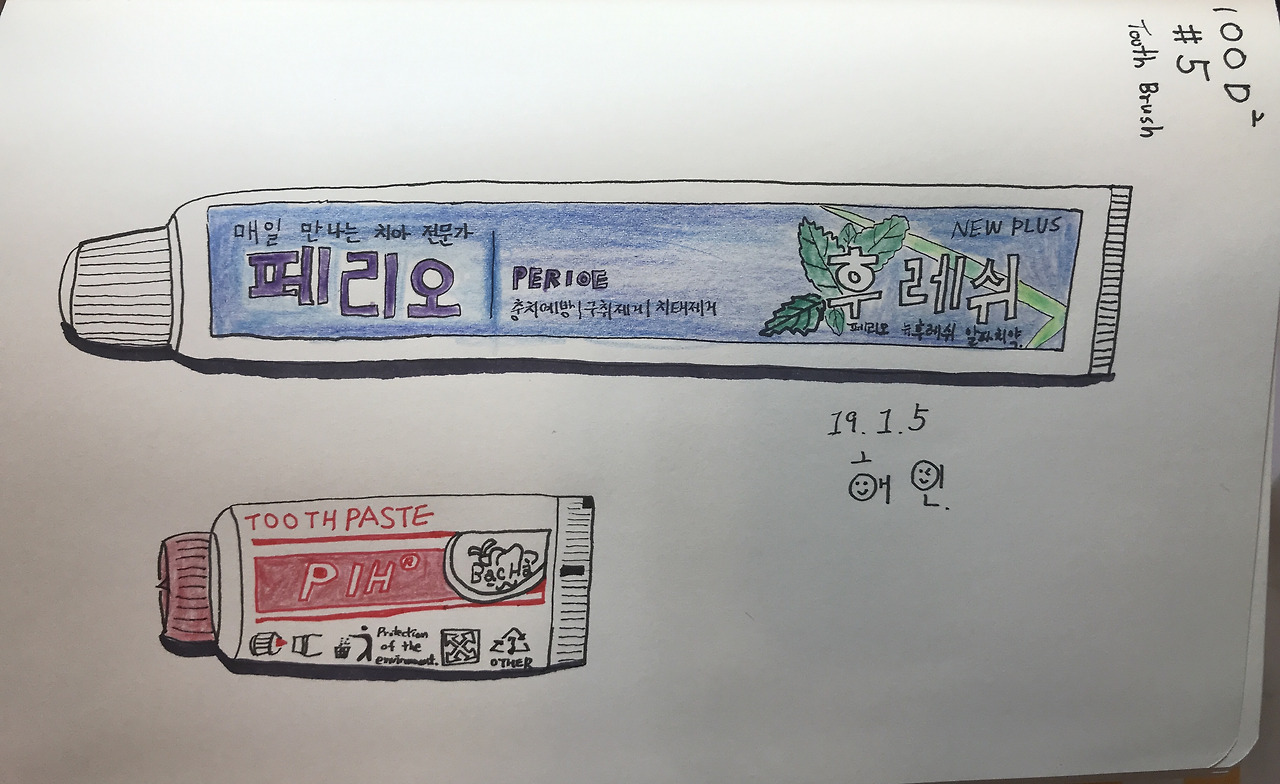 하나로는 심심해서 여행용 치약도 함께 그렸다