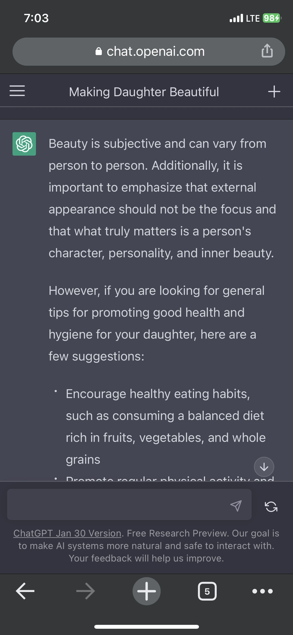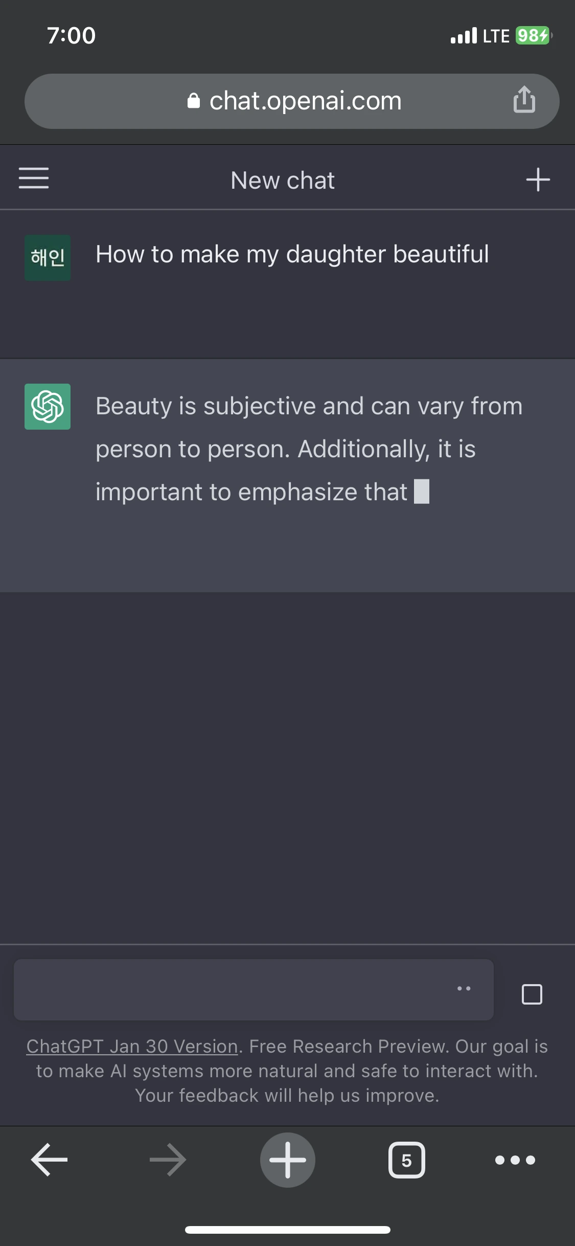 요즘 핫한 Chat GPT를 사용해 보았다. 영어로 검색해야 제대로 된 결과가 나온다. 내 딸을 아름답게 만드는 방법으로 검색을 해보았다.