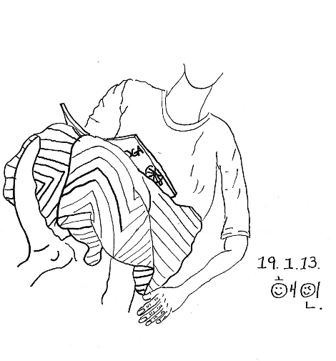 일단 눈에 보이는 부분부터 스케치를 시작했다. 손을 그리다가 자세한 부분은 생략하기로 했다. 그려봐야 아내에게 좋은 소리를 들을 수 없어 보였다.