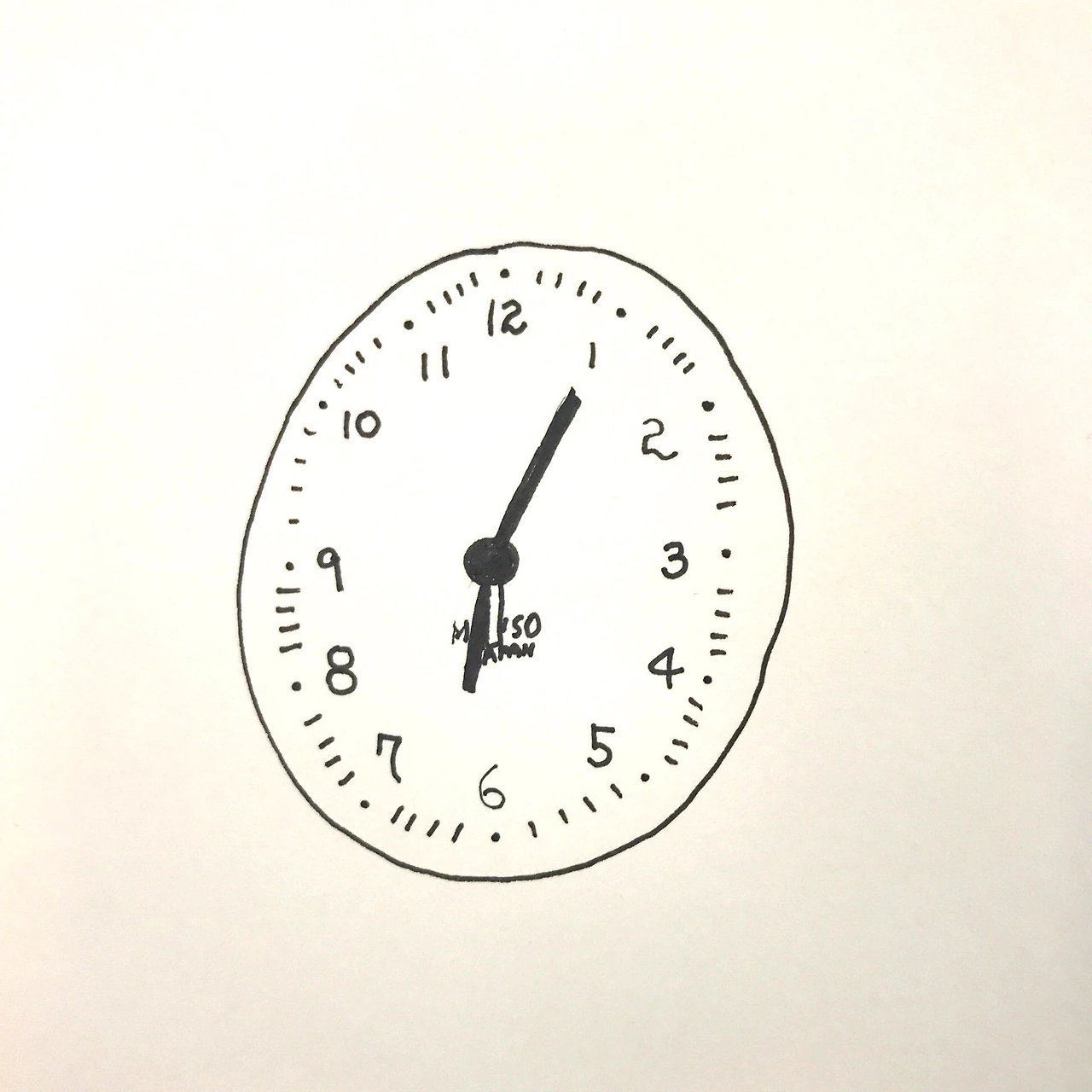 시침과 분침을 그렸는데 원이 찌그러졌다. 원래는 정말 둥그런 원이 되어야 하는데. 분의 간격도 모두 제각각이다. 전에도 느끼는 것이지만 내 그림은 참 규칙이 없다. 그냥 손가는대로 그리다 보니 선이 술에 취한 듯 이리저리 흔들린다. 다른 분들의 그림을 보면 미리 구도도 생각하고 연필로 사전 스케치도 하고 준비를 많이 한다. 그렇게 어느 정도는 틀에 잡힌 그림을 그린다.