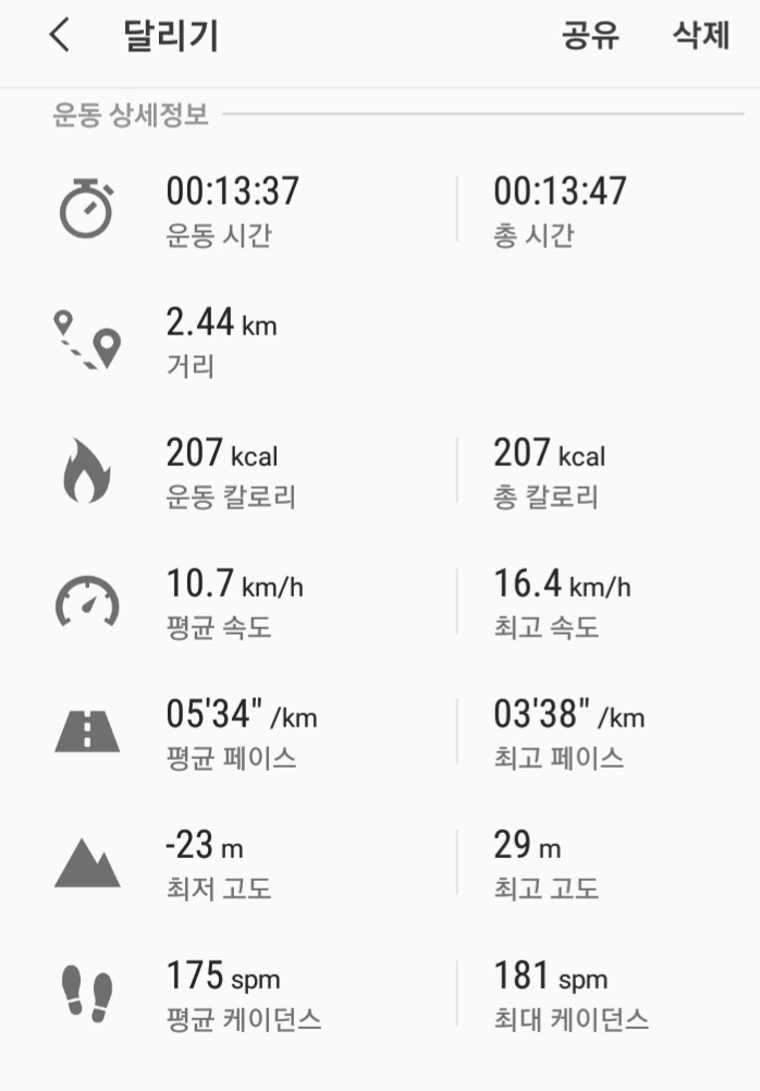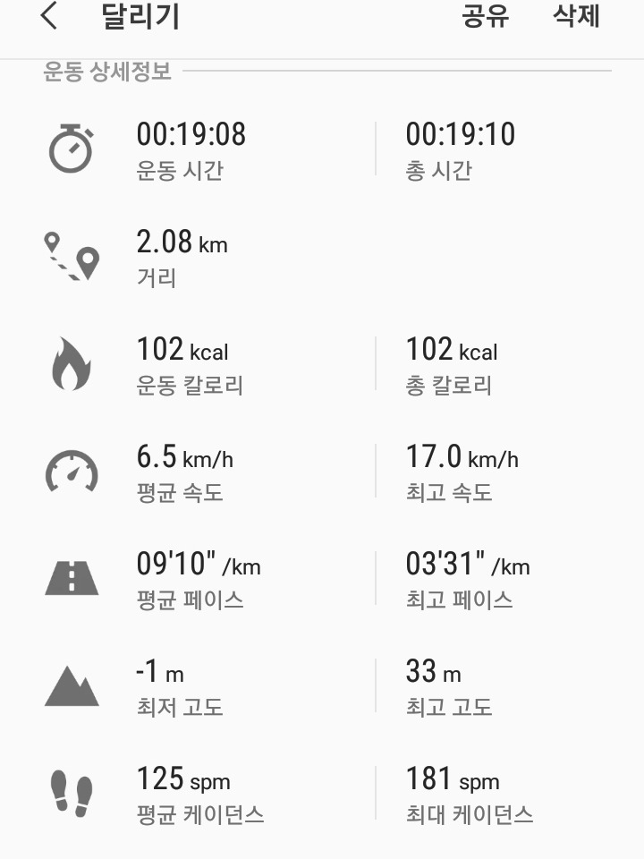 뜻하지 않게 초반 달리기 연습 후 중지 버튼을 눌러버렸다. 기록이 쪼개져서 두 번 기록해야 하는 불편함이 생겼다. 하지만 계속 달린다는 것이 중요하니까 새로 시작해서 운동을 이어갔다.